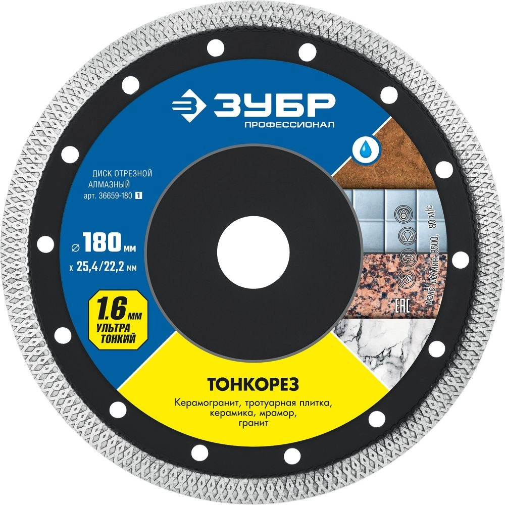 ПроизводителиКруг алмазный сплошной 180х1.6х10х25.4/22.23 мм "ТОНКОРЕЗ" (36659-180_z01) ЗУБР