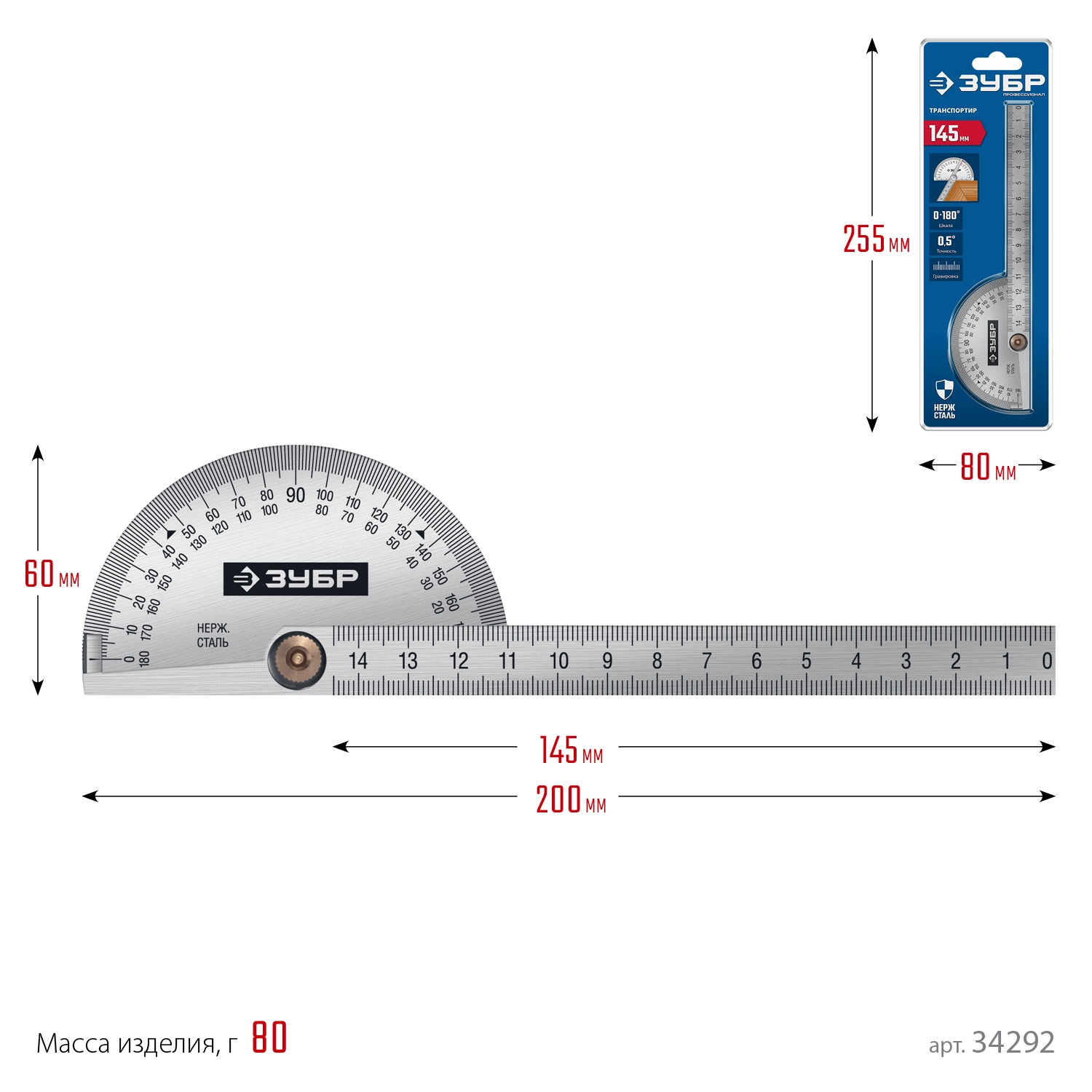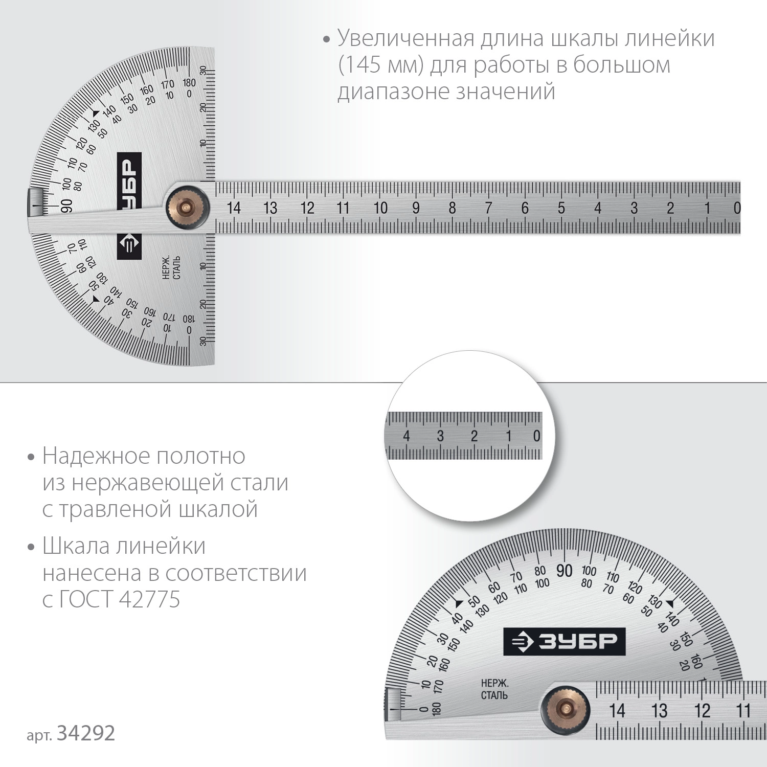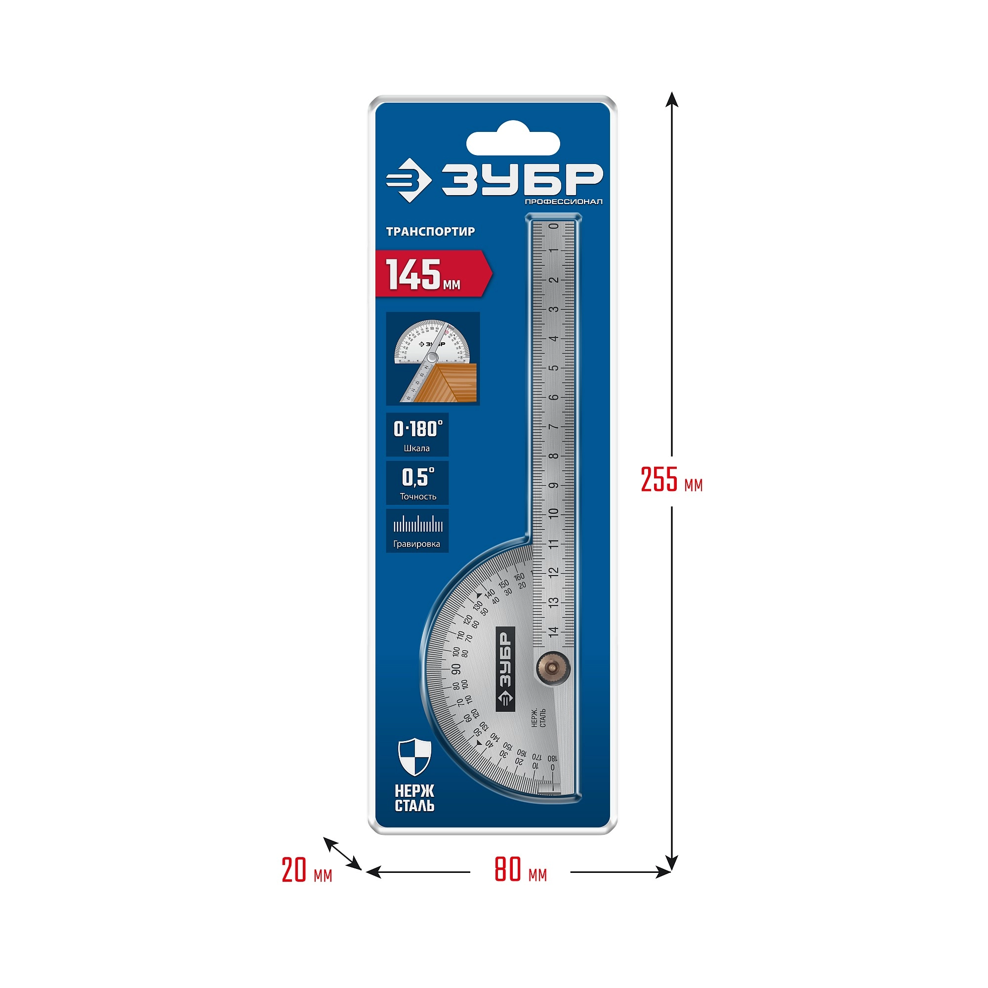 ПроизводителиТранспортир из нержавеющей стали, 100мм (34292_z01) ЗУБР