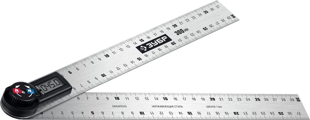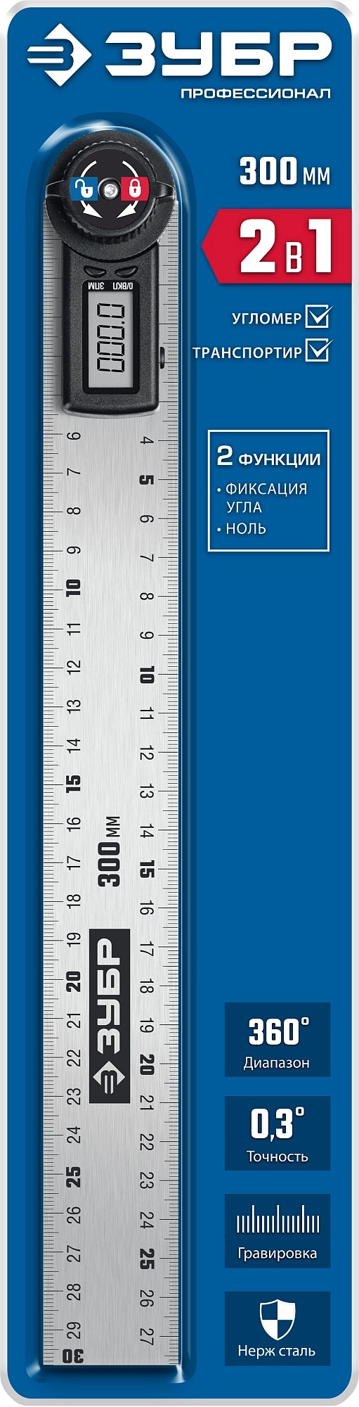 ПроизводителиТранспортир-угломер элект. 300мм,0-360°, точн. 0,3°, фикс. угл. (34296) ЗУБР