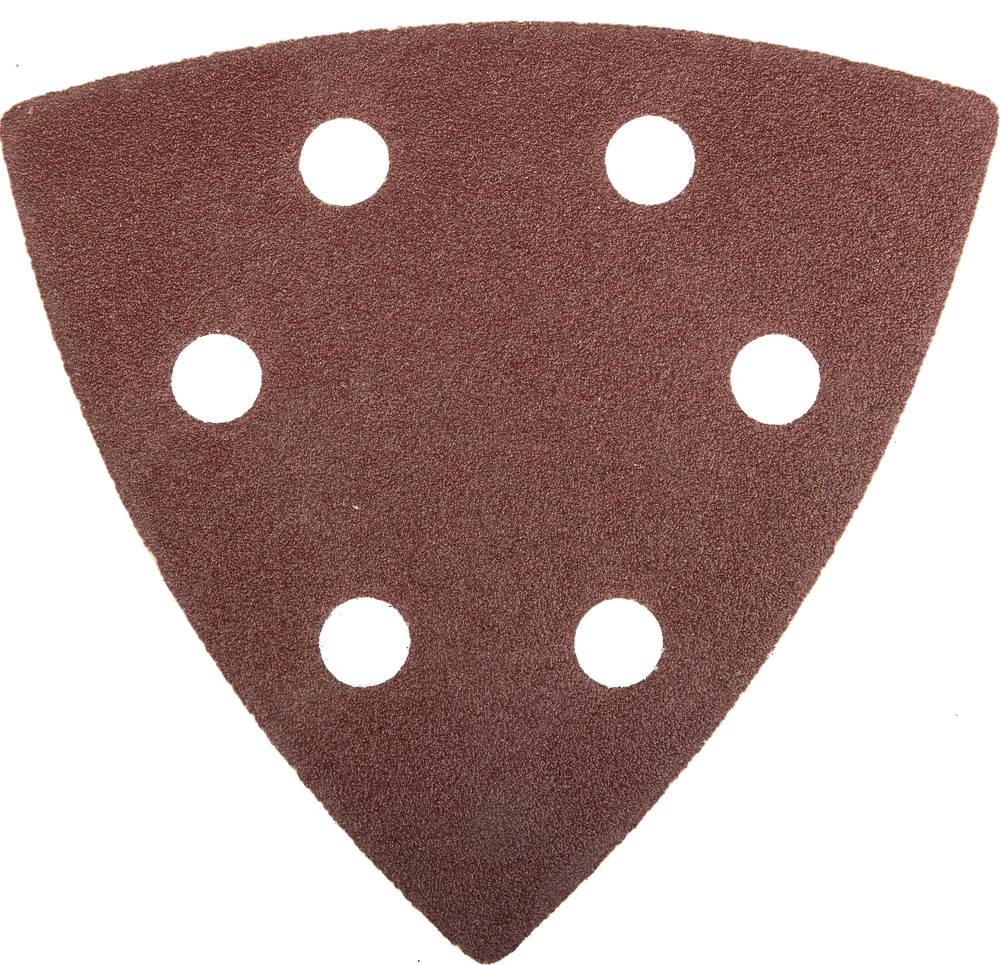 Электростатический способ нанесения абразива гарантирует высокоэффективное шлифование. Низкий показатель забиваемости достигается антистатическим покрытием. Возможность быстрой смены круга благодаря Велкро основе с липучкой. Наличие отверстий на треугольнике обеспечивает быстрое пылеудаление при шлифовании с пылесосом.