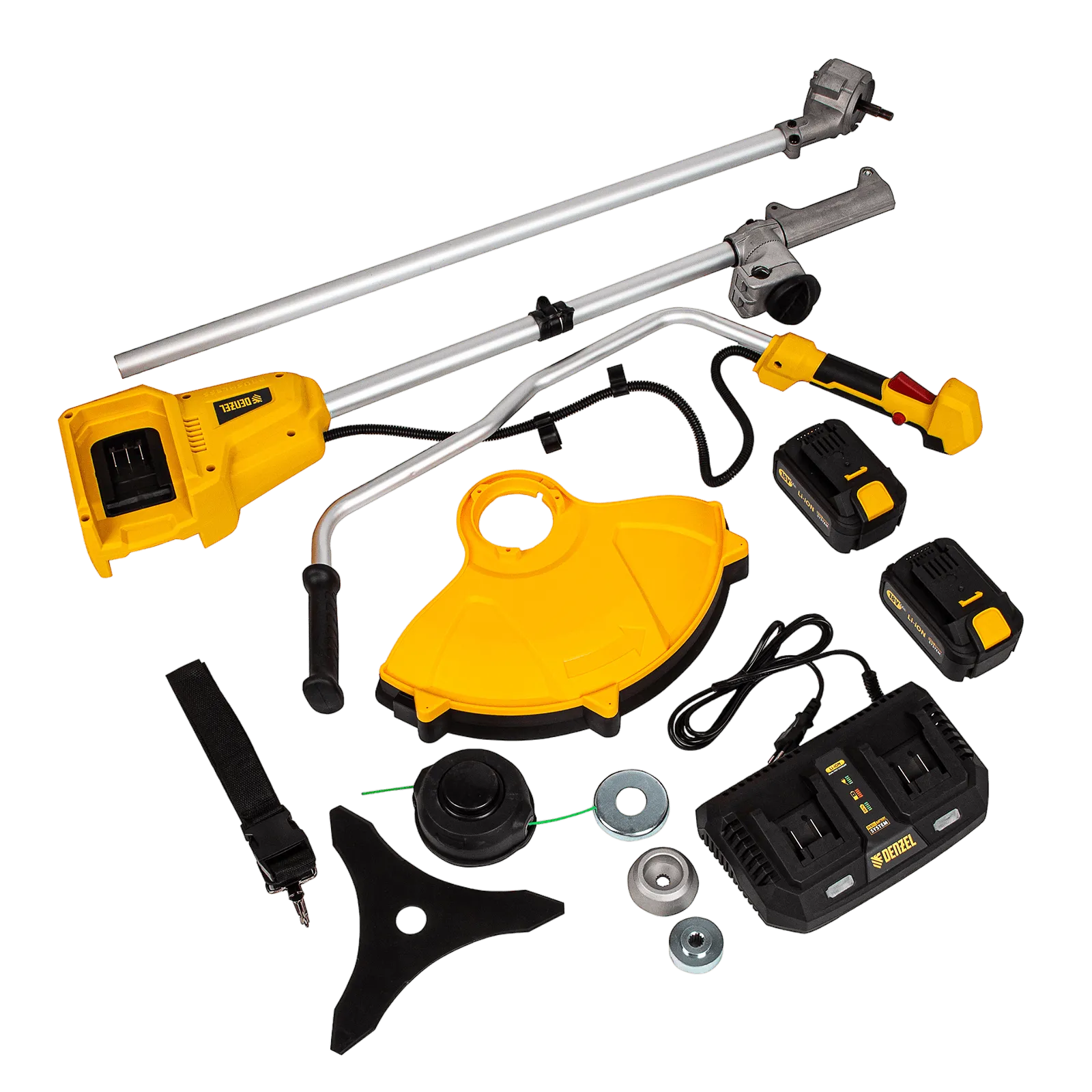 ПроизводителиТриммер аккум. CBC350-36 (36.0 В (18+18), 2 акк. х 4.0 А/ч, ш/с 35см, леска 2.0мм) Denzel