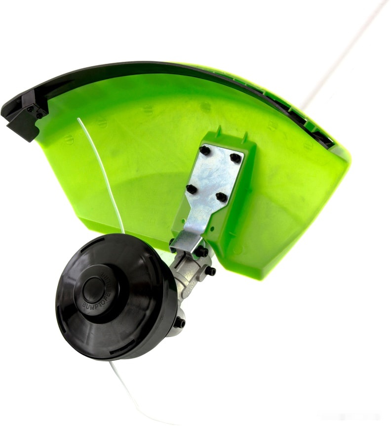 Защитный кожух обеспечивает безопасную работу, т.к не дает траве, веткам и камням отлетать на оператора.