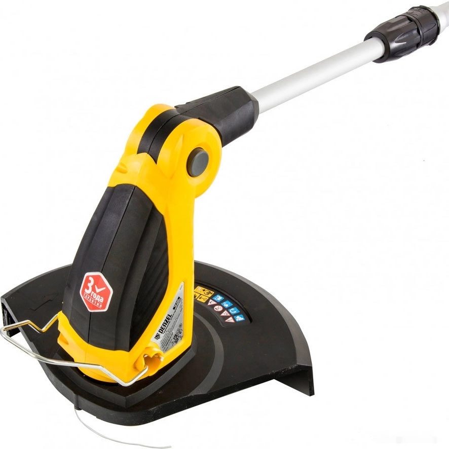 ХарактеристикиАртикул 96620Бренды DENZELСтрана производства КитайТип электрическийШирина скашивания 33Колеса 3275Форма штанги прямаяРасположение двигателя нижнееПодача лески автоматическаяВес 3.45Режущая оснастка лескаДиаметр лески 1.3Сменные насадки нетРазъемная штанга нетТелескопическая штанга естьРеменная оснастка нетРегулировка угла наклона естьОписание товара обновлено 08.12.2025 15:06:43Триммер Denzel TE-350 мощностью 650 Вт идеально подходит как для газона, так и для молодой травы.
