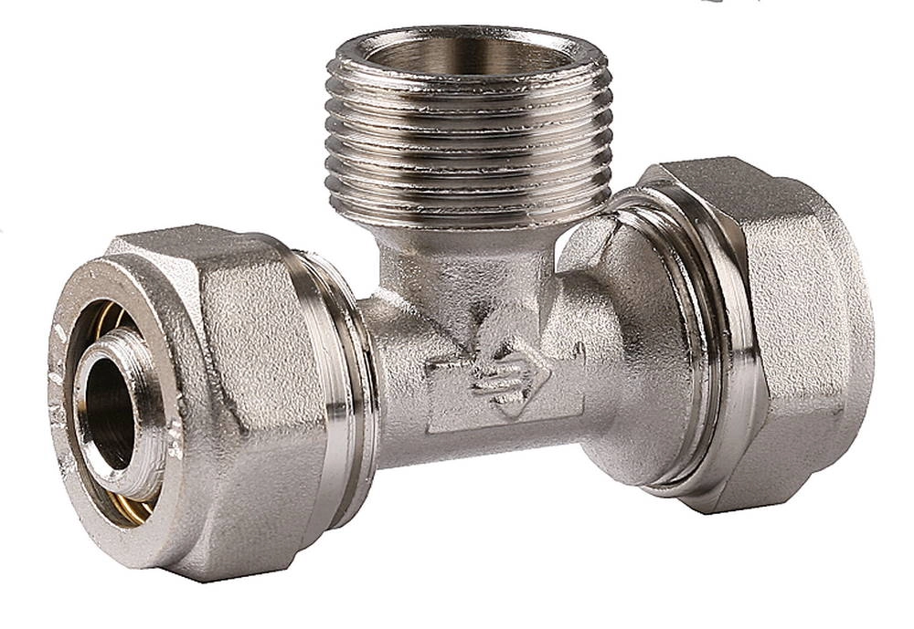 ПроизводителиТройник с наружной резьбой, цанга-штуцер, 1/2"х16х2,0 мм, никель (51404-16-1/2) ЗУБР