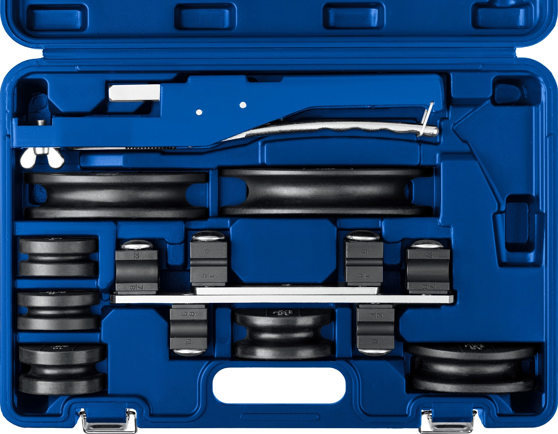 - Расширенный комплект гибочных форм (7шт) с указанием размера трубы в мм и дюймах