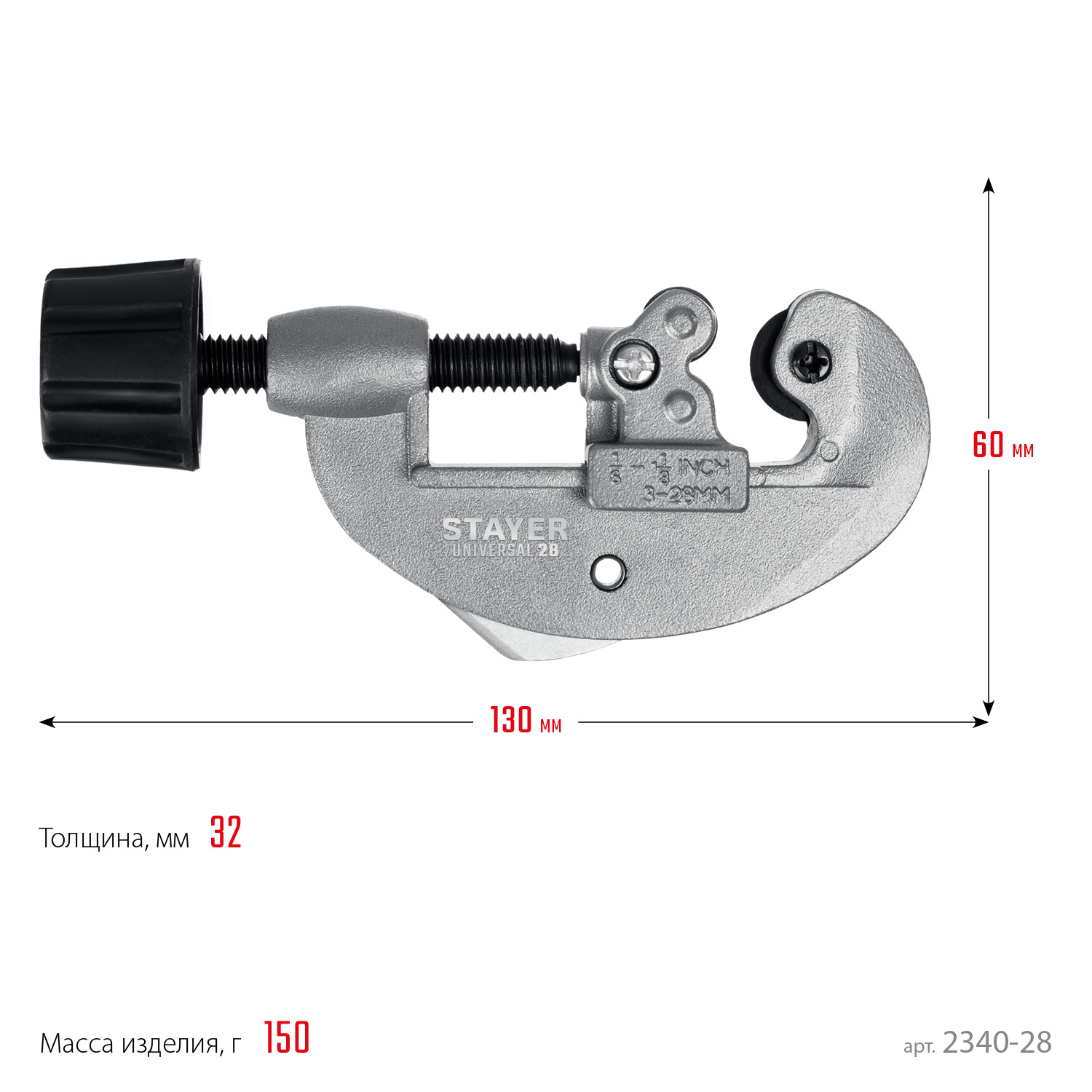 ПроизводителиТруборез для меди и алюминия, 3-28 мм, Universal-28 Professional 2340-28)(2340-28_z02) STAYER