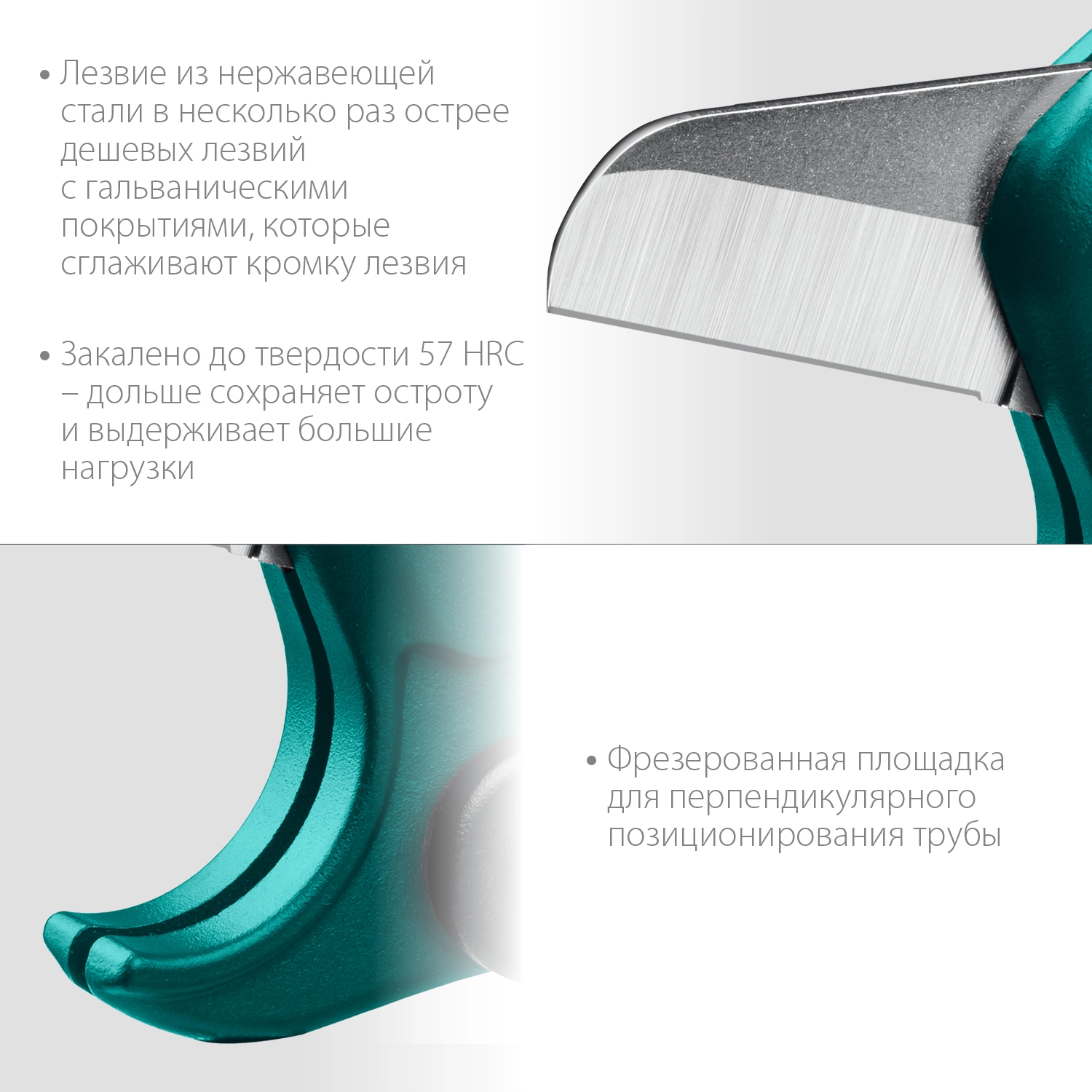 ЭКСПЕРТУровень качества. При классификации продуктов, имеющих схожее наименование, но обладающие различными потребительскими свойствами мы приняли следующий Вес факторов: 80% - подтвержденный ресурс, 15% - заявленная производительность/скорость, 5% - субъективные ощущения потребителя. ПодробнееКод товара: 0013048(0)Труборезы Kraftool разработаны в соответствии с высокими требованиями профессионалов. Режущие элементы, изготовленные из легированной стали высшего качества, обеспечивают высокую режущую способность в течение продолжительного срока службы . Инновационная система крепления обеспечивает быструю и легкую смену режущего элемента, комфортную и эффективную работу.60.11 руб. за шт