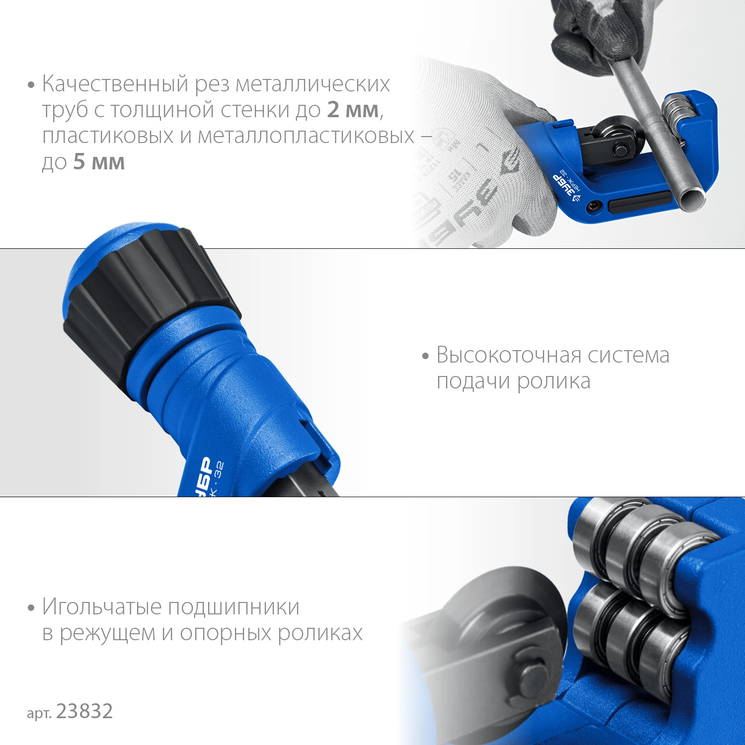 ПроизводителиТруборез для нержавеющей стали 4-32 мм "Нерж-32" (23832) ЗУБР