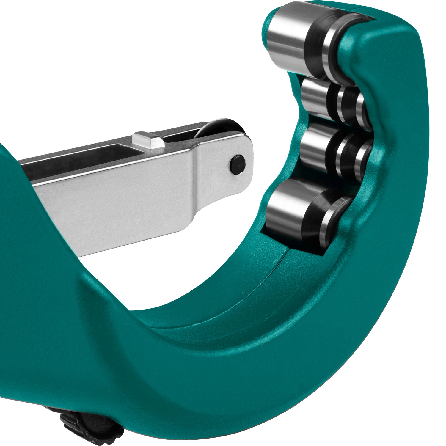 - 4 полированных опорных валика с канавками обеспечивают надежный захват трубы, прямой ровный рез и минимальное сопротивление при вращении.
