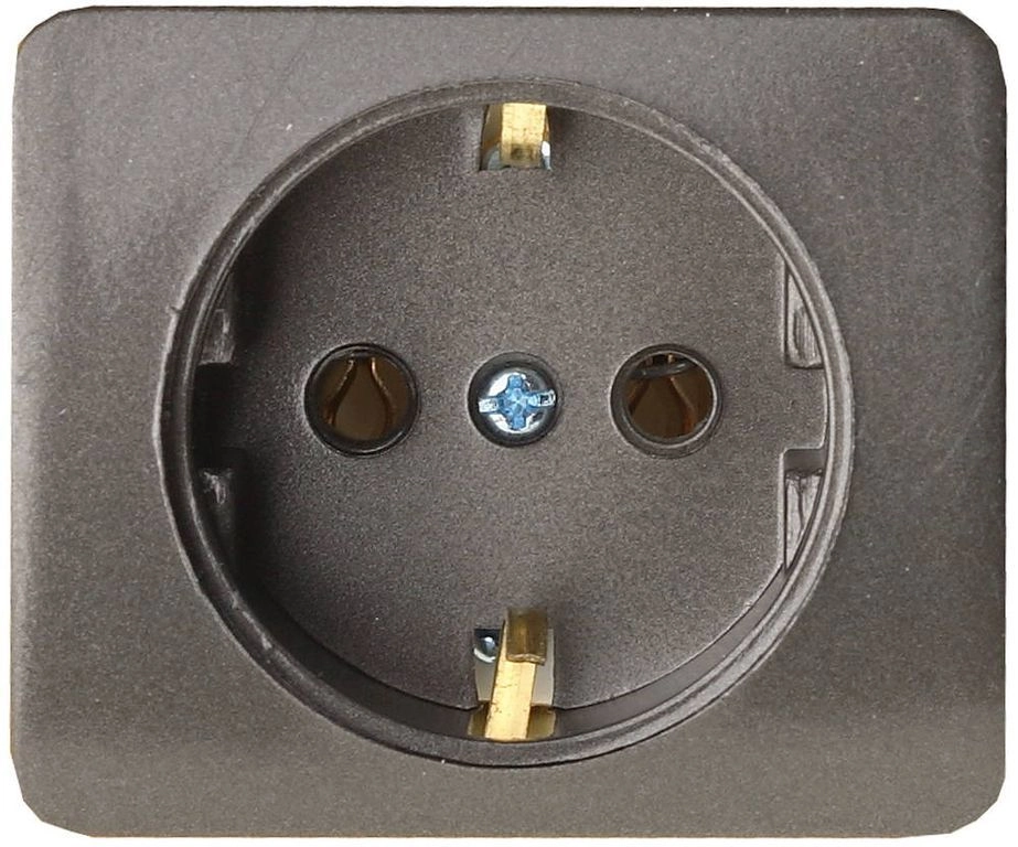 ПроизводителиРозетка СВЕТОЗАР "ГАММА" с заземлением, одинарная, без вставки и рамки, цвет темно-серый металлик, 1