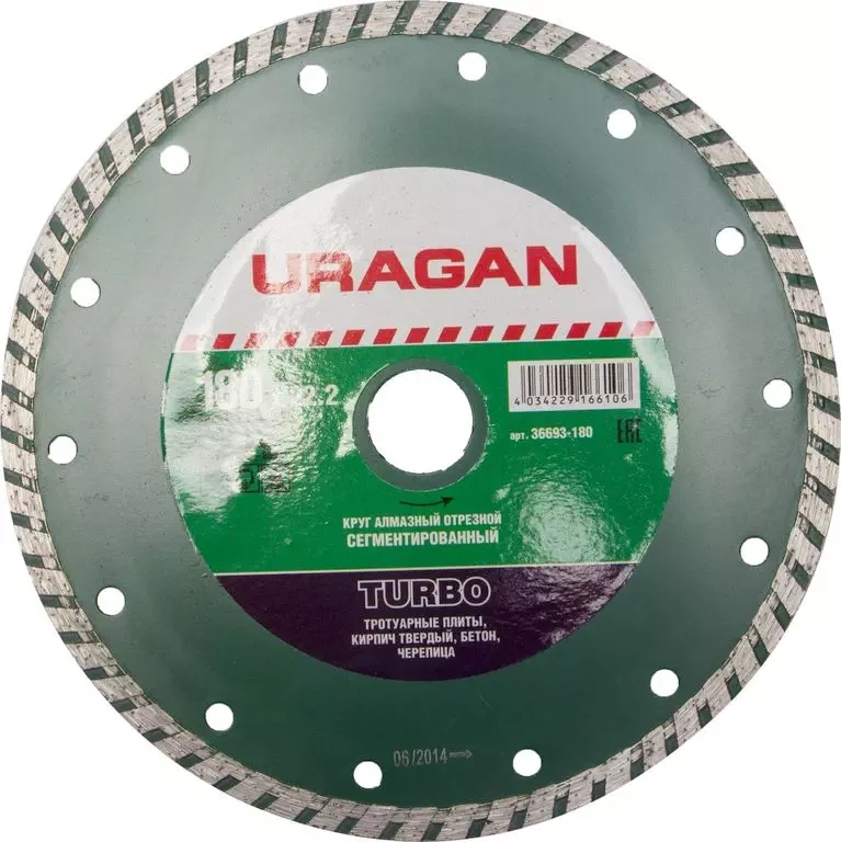 ПроизводителиTURBO 230 мм, диск алмазный отрезной сегментированный по бетону, кирпичу, камню, (36693-230) URAGAN