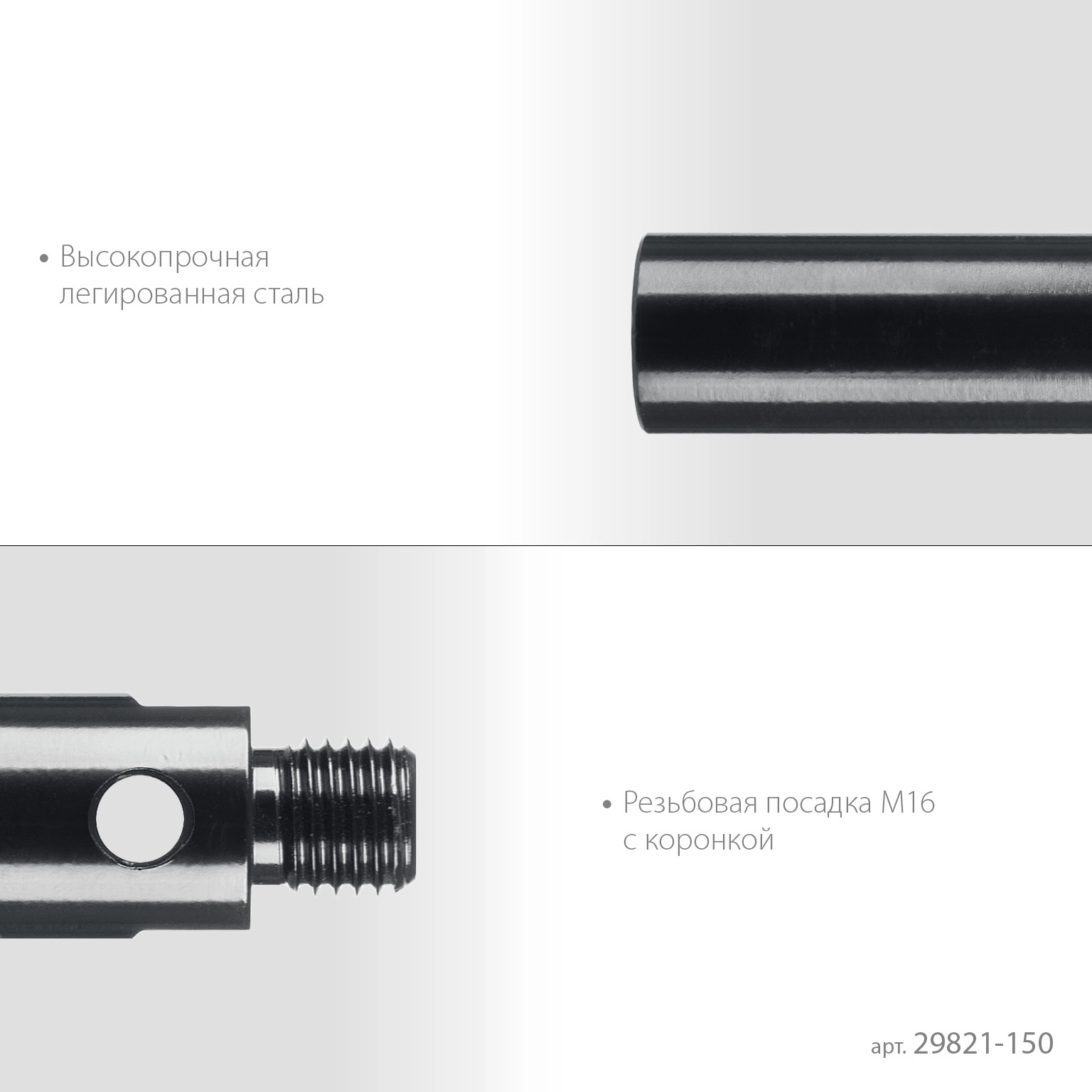 ПроизводителиУдлинитель для алмазных коронок (сверл трубных), 150 мм, М16, стальной (29821-150) KRAFTOOL
