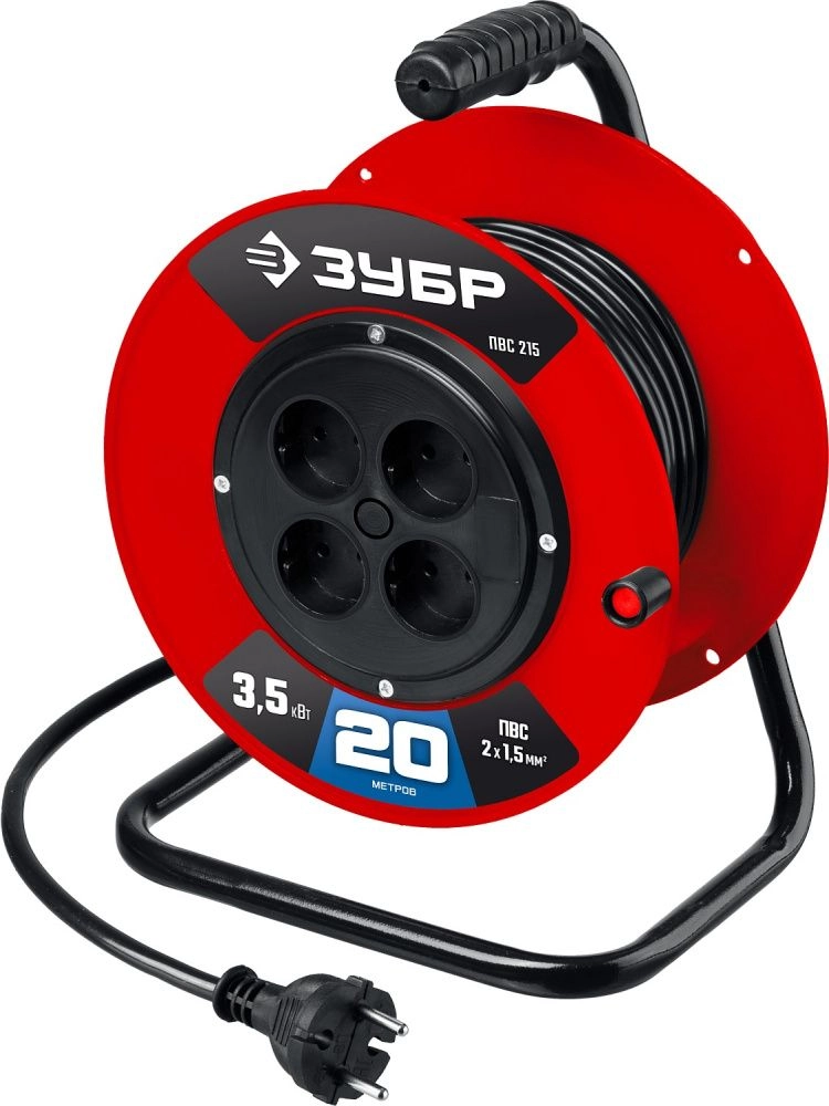 ПроизводителиУдлинитель силовой на катушке ПВС-215, ПВС, 2х1.5мм2, 20 м, 3500 Вт (55103-20) ЗУБР