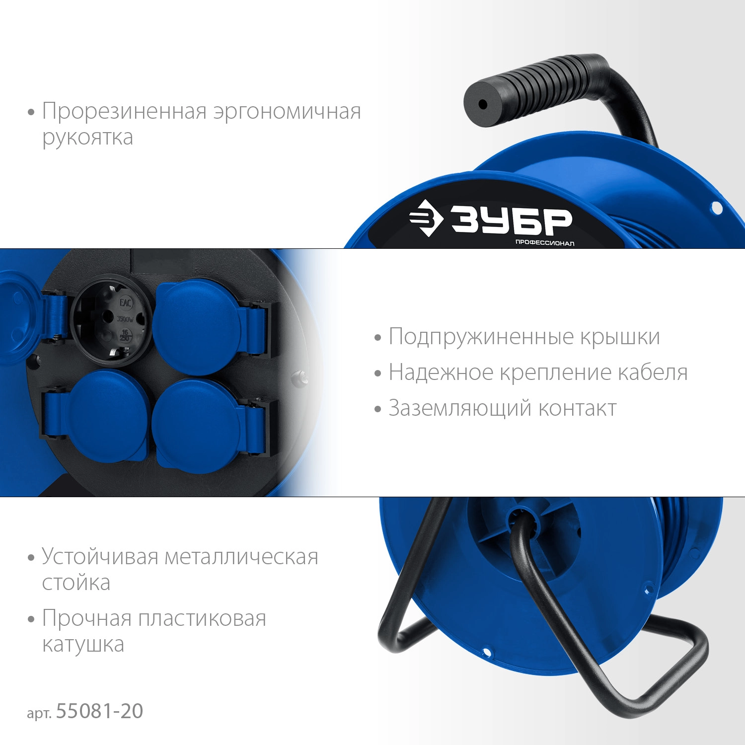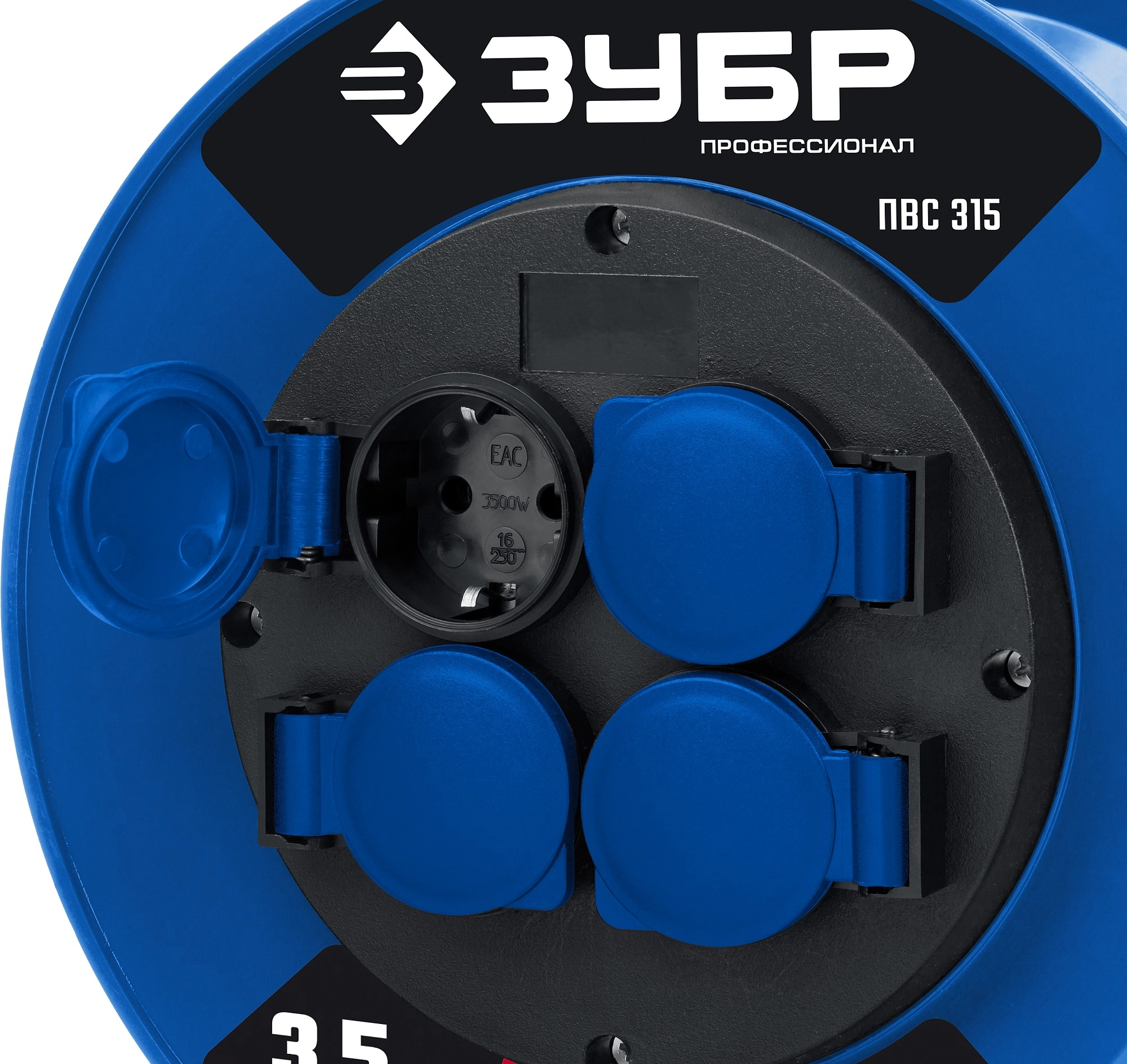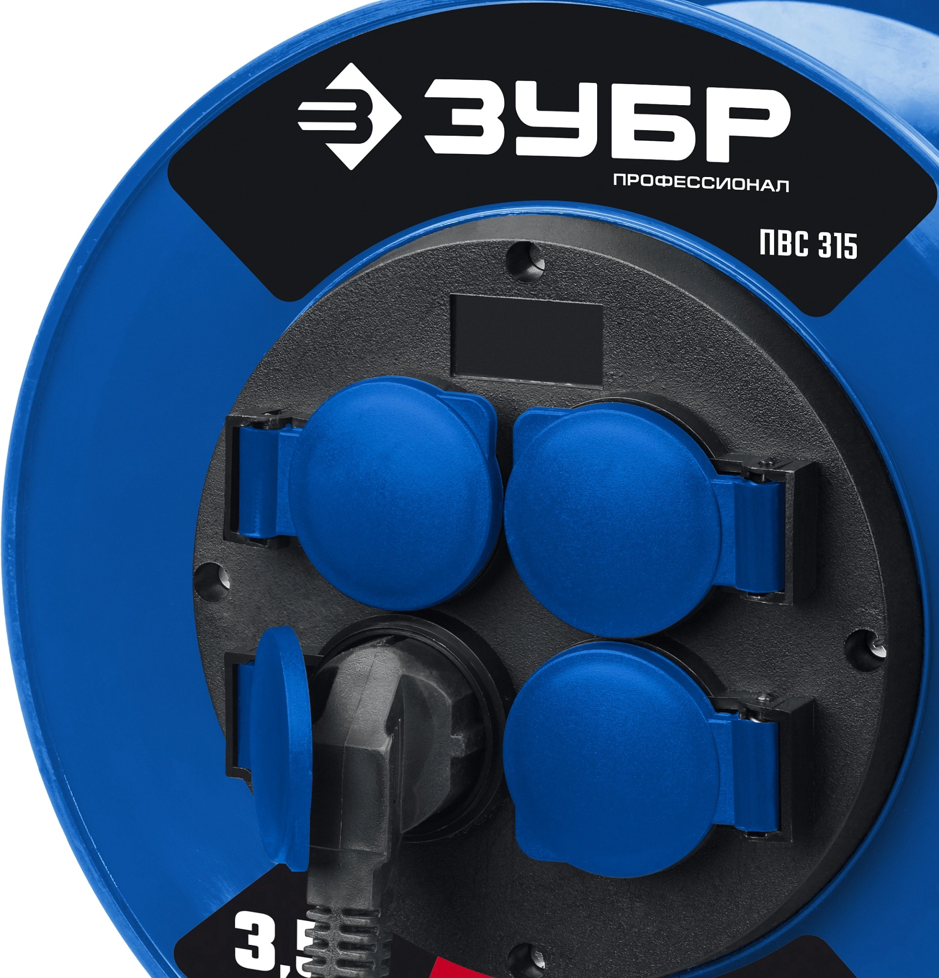 ПроизводителиУдлинитель силовой на катушке ПВС-315, ПВС, 3х1.5мм2, 20 м, 3500 Вт, IP44 (55081-20_z01) ЗУБР