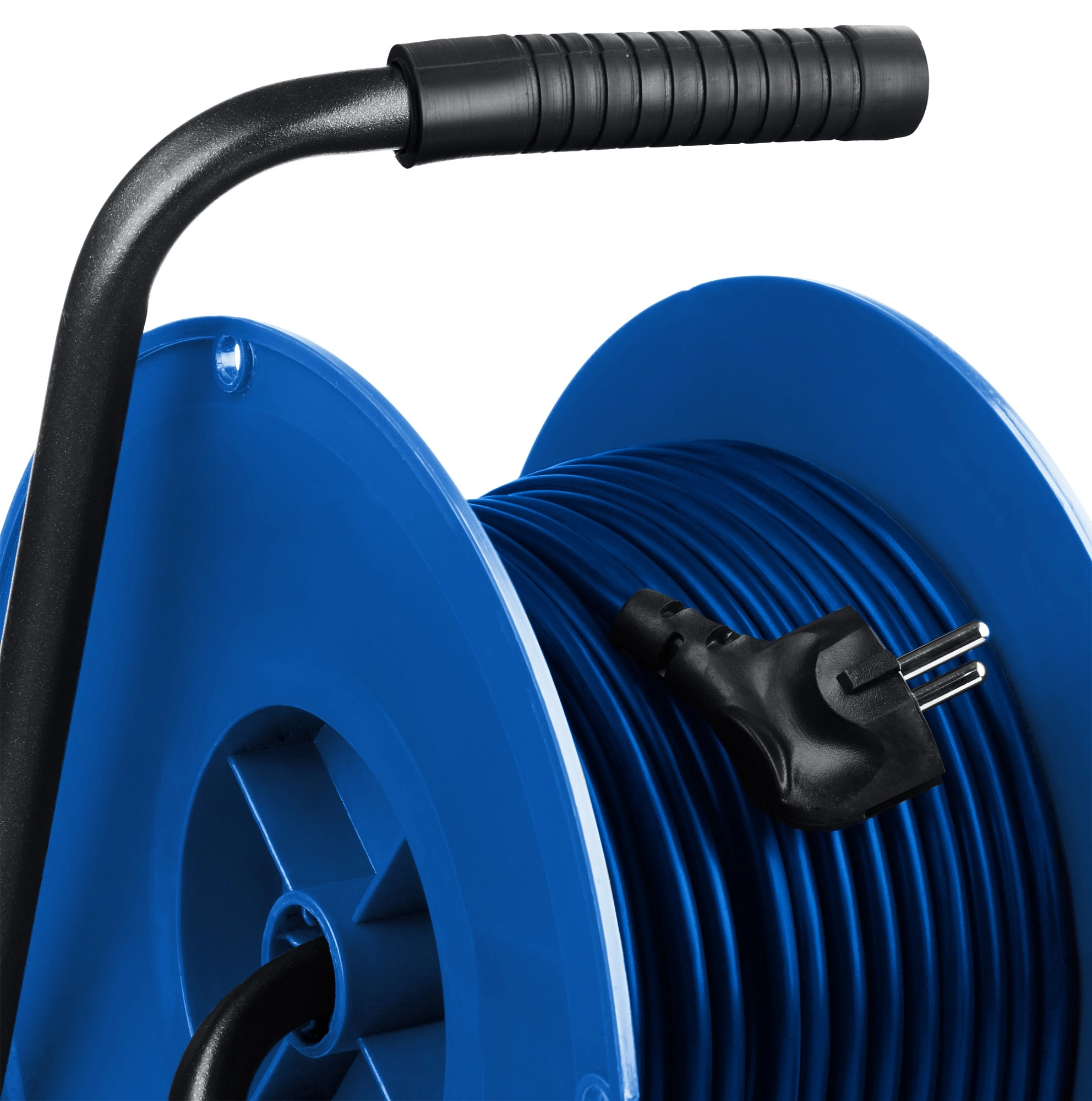 - Катушка позволяет легко сматывать и разматывать кабель, обеспечивая мобильное перемещение и компактное хранение.