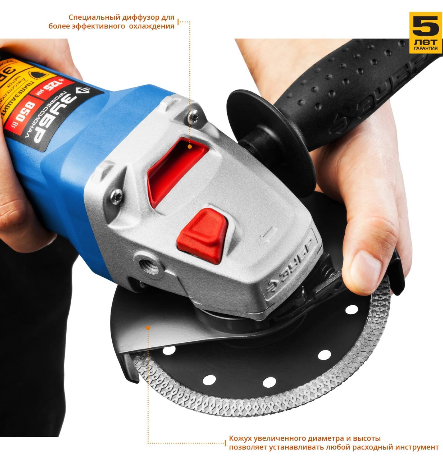 ПРОФИУровень качества. При классификации продуктов, имеющих схожее наименование, но обладающие различными потребительскими свойствами мы приняли следующий Вес факторов: 80% - подтвержденный ресурс, 15% - заявленная производительность/скорость, 5% - субъективные ощущения потребителя. ПодробнееХарактеристикиАртикул УШМ-П125-850Бренды ЗубрСтрана производства КитайГарантия 12 месяцевТип питания сетьПотребляемая мощность, Вт 850Число оборотов холостого хода, об/мин 11000Макс. диаметр диска, мм 125X-Lock нетКейс в комплекте нетОписание товара обновлено 11.09.2025 11:46:39Угловая шлифмашина ЗУБР УШМ-П125-850, предназначена для зачистки, шлифовки и резки металлов, обработки бетона и камня при установке соответствующих шлифовальных, отрезных, алмазных кругов. Компактная универсальная модель для эффективной работы. Надежная защита основных узлов от пыли. Специально разработанный корпус редуктора для улучшения теплоотвода и обеспечения прочности самого нагруженного узла. Направляющий диффузор в системе обдува способствует стабильности температуры основных компонентов. Низкий уровень шума за счет редуктора с косозубыми коническими шестернями. Поворотная с шагом 90° голова позволяет настроить изделие под левую руку или для резки. Защитный кожух диска с мгновенной регулировкой положения удобным рычажком в одно движение. Блокировка шпинделя для быстрой замены диска. Фланцы из разного материала предотвращают чрезмерное затягивание диска при работе. Фирменная дополнительная рукоятка, устанавливаемая в 2 положениях. Простой доступ к щеткам для замены.Углошлифовальная машина - 1шт.