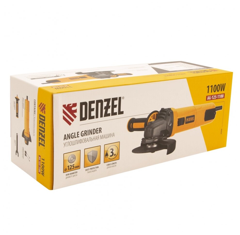 ПроизводителиУгловая шлифмашина AG125-1100, 1100 Вт, 125 мм, 3000-11000 об/мин Denzel
