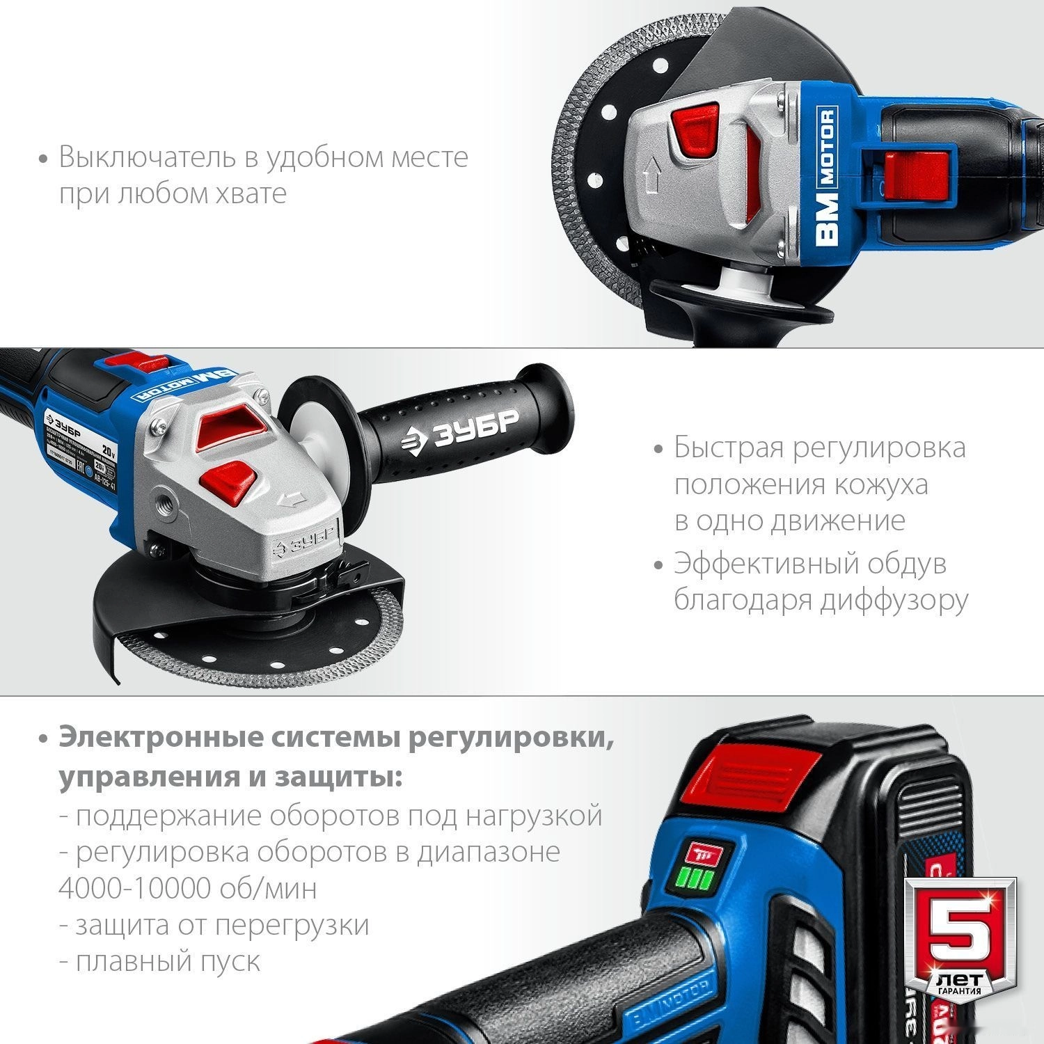 Высокотехнологичная замена сетевой УШМ мощностью до 1200 Вт.