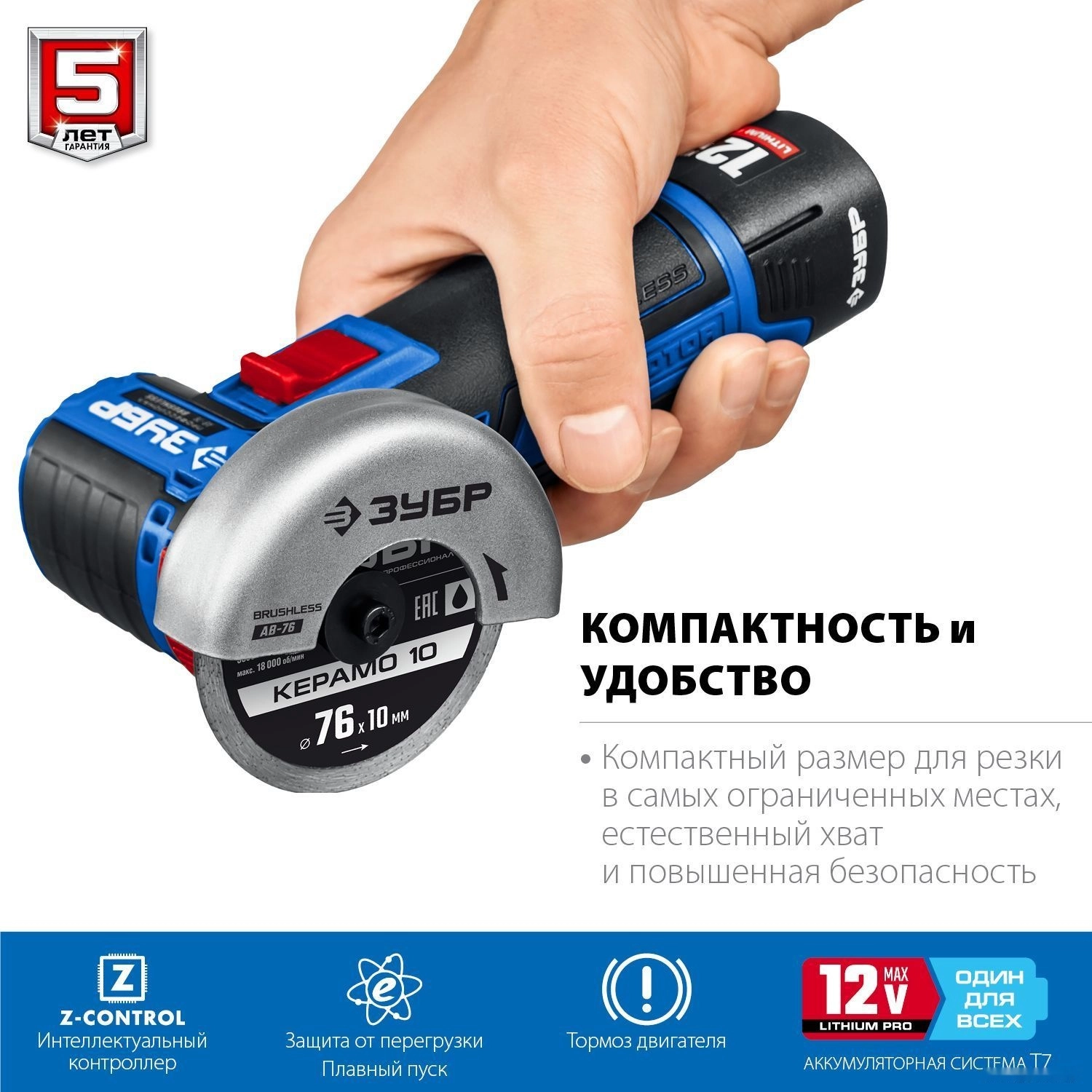 Бренд: ЗУБРВысокотехнологичная замена сетевому инструменту. Маневренная УШМ суперкомпактного класса позволяет выполнять резку одной рукой в самых ограниченных местах. Повышенные надежность и безопасность благодаря всем контрольными и защитными системами. Низкое энергопотребление позволяет работать дольше