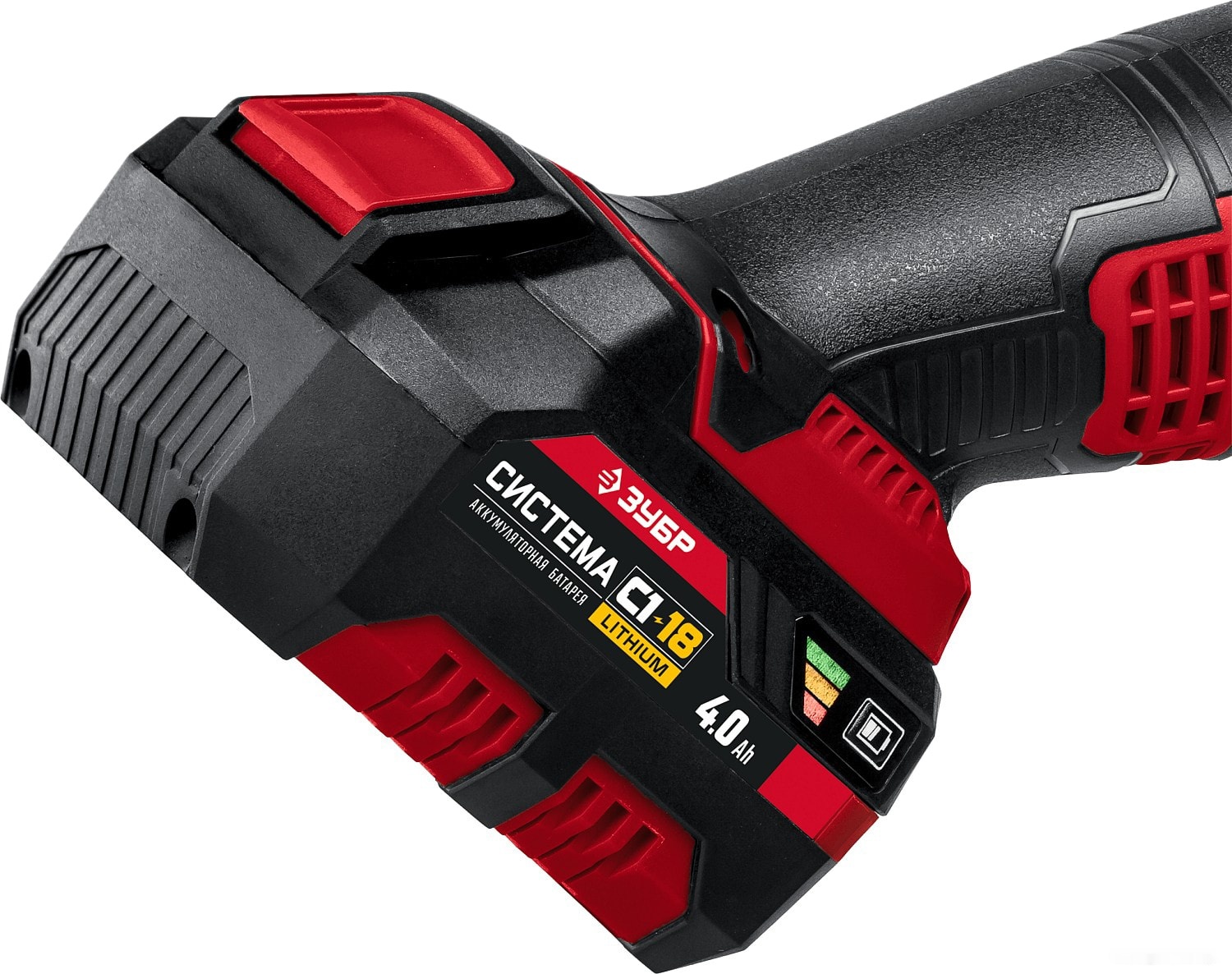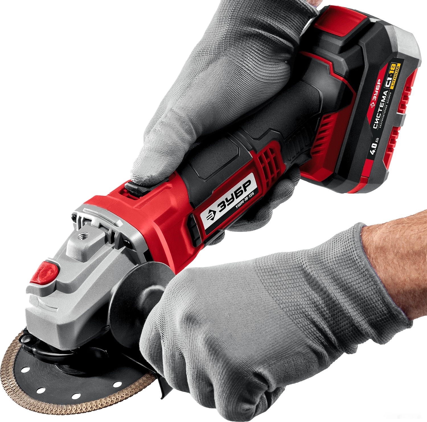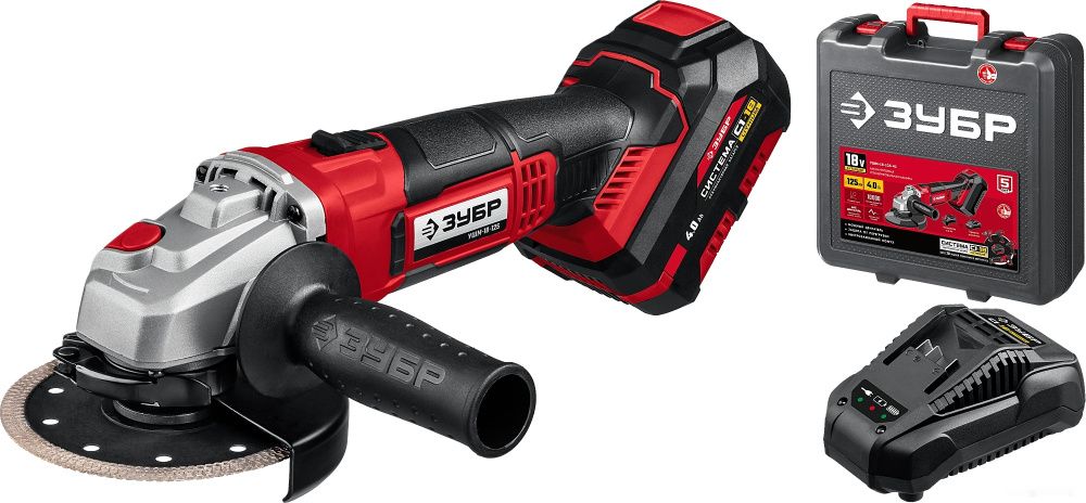 ПроизводителиУгловая шлифмашина аккум. УШМ-18-125-41 (18.0 В, 1 акк.х4.0 А/ч Li-Ion,125мм, чем.) ЗУБР