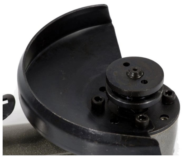 - Безопасность — специальный кожух защищает мастера от разлетающихся искр и пыли, а предохранитель предотвращает случайный запуск УШМ.