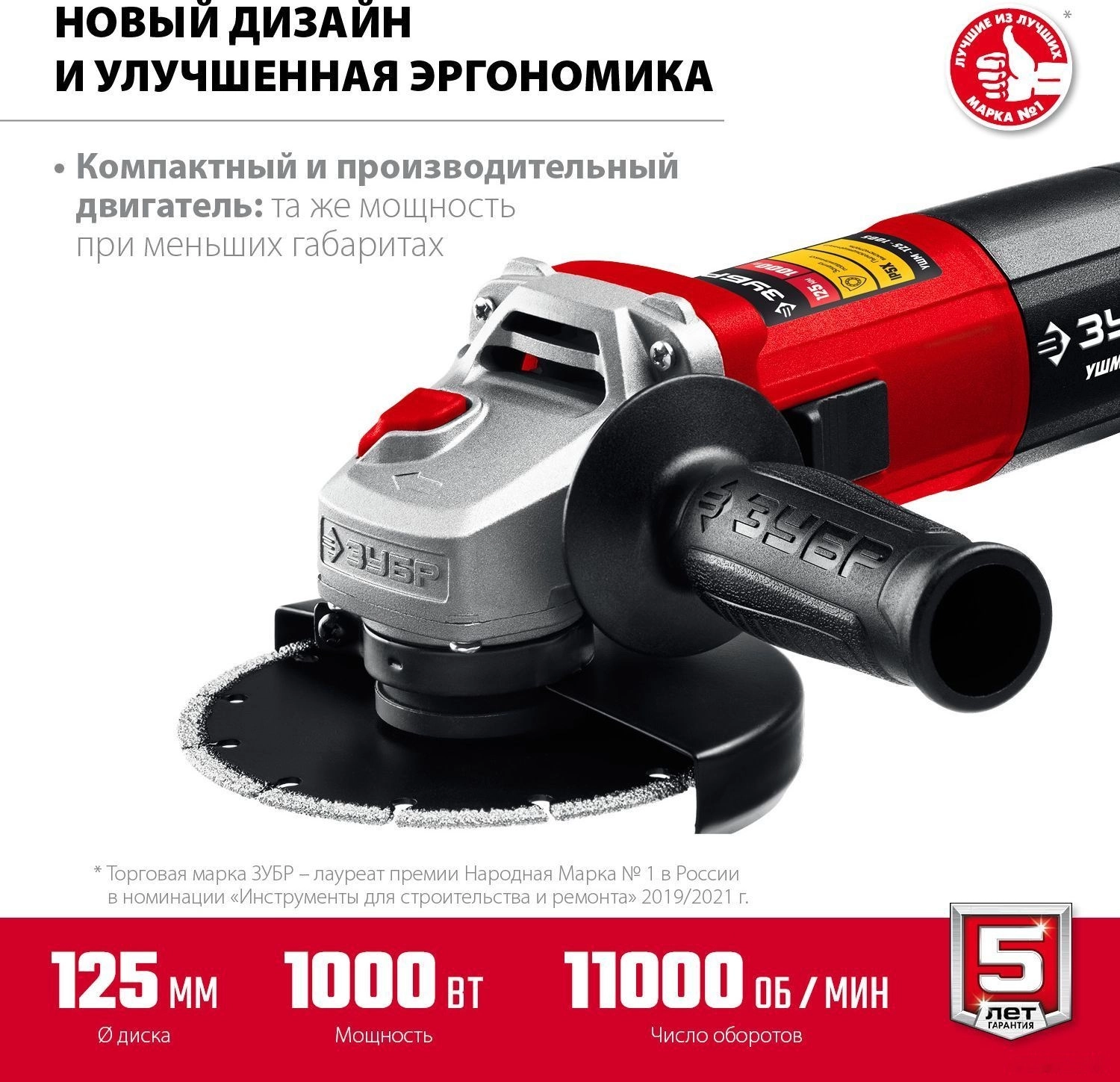 Преимущества шлифмашина ЗУБР УШМ-125-1005