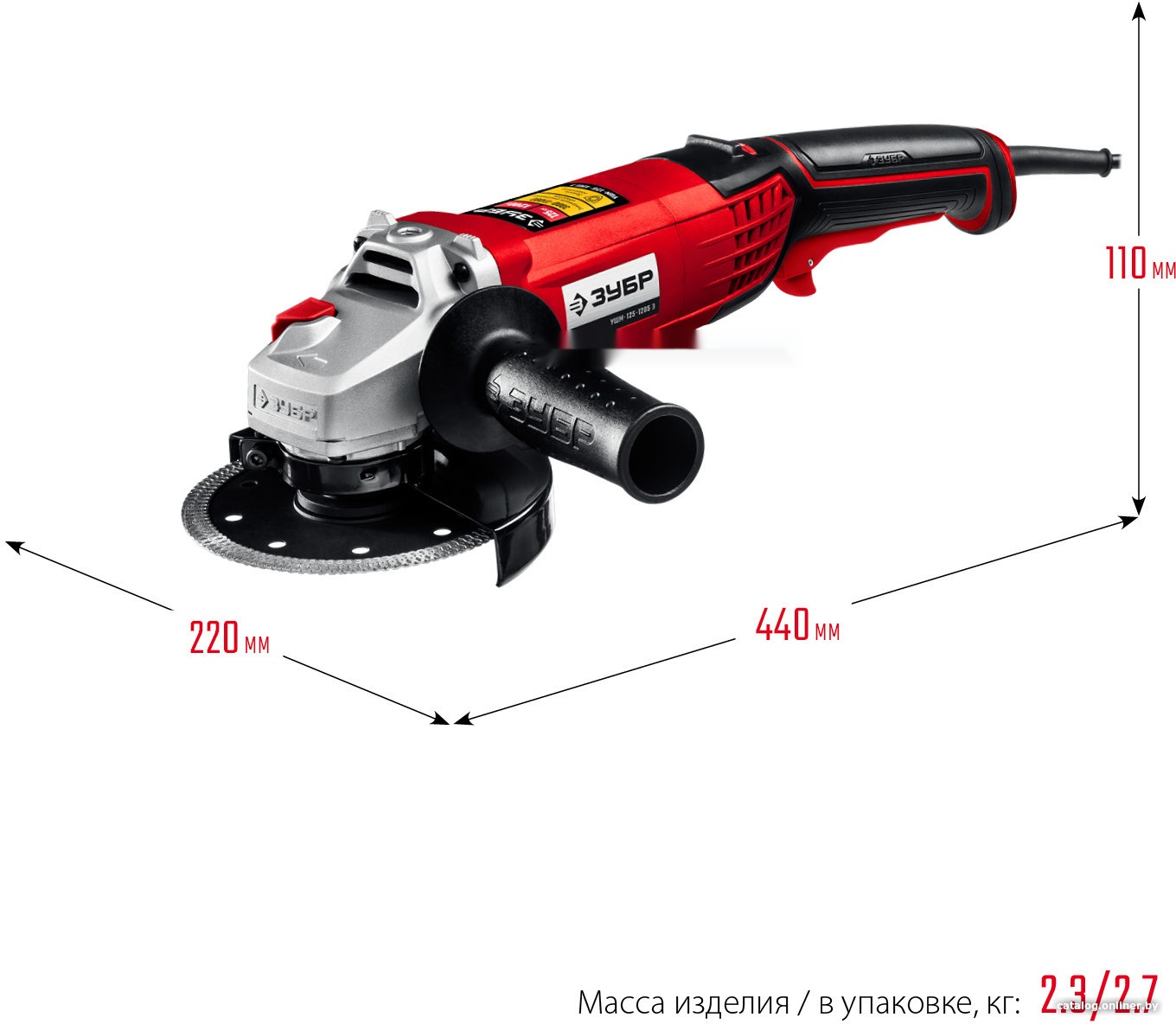 СТАНДАРТУровень качества. При классификации продуктов, имеющих схожее наименование, но обладающие различными потребительскими свойствами мы приняли следующий Вес факторов: 80% - подтвержденный ресурс, 15% - заявленная производительность/скорость, 5% - субъективные ощущения потребителя. ПодробнееКод товара: 0060833(0)ХарактеристикиАртикул УШМ-125-1205 ЭБренды ЗубрСтрана производства КитайТип питания сетьПотребляемая мощность, Вт 1200Число оборотов холостого хода, об/мин 11000Макс. диаметр диска, мм 125Длина сетевого кабеля, м 2X-Lock нетКейс в комплекте нетВес, кг 2,4Описание товара обновлено 11.09.2025 11:44:50Угловая шлифмашина ЗУБР УШМ-125-1205 Э, предназначена для зачистки, шлифовки и резки металлов, обработки бетона и камня при установке соответствующих шлифовальных, отрезных, алмазных кругов. Двуручный хват позволяет надежно удерживать ее, регулятор оборотов расположен прямо под пальцем и широкий выключатель для удобства работы. Конструктивные решения, защищающие изделие от пыли (пылезащищенный выключатель и лабиринтные уплотнения подшипников), гарантируют надежную работу инструмента долгие годы. Специальная конструкция щеткодержателя, предотвращающая повреждение коллектора при полном износе щеток. Возможность установки дополнительной рукоятки в трех положениях. Удобная блокировка шпинделя для быстрой замены диска. Корпус редуктора из алюминиевого сплава лучше отводит тепло.Углошлифовальная машина - 1 шт. Кожух защитный - 1 шт. Рукоятка дополнительная - 1 шт. Ключ специальный - 1 шт. Ключ имбусовый - 1 шт. Руководство по эксплуатации - 1 шт.Производитель: Крафтул И/Е Гмбх, Альтер Поствег Штр., Лоенинген, Германия