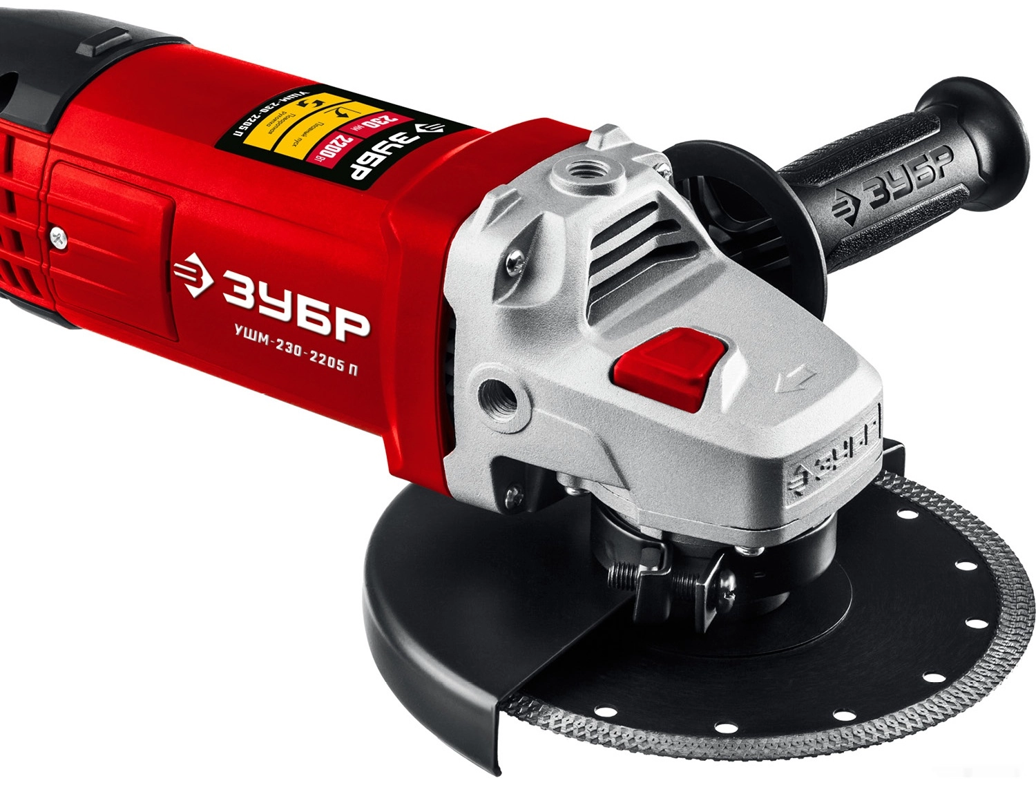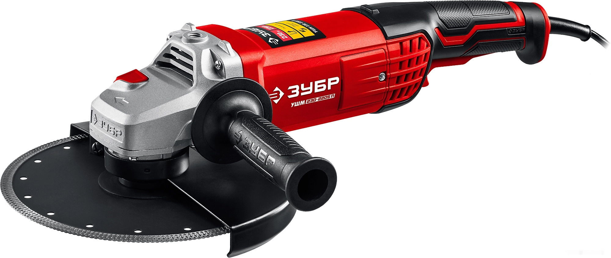 ПроизводителиУгловая шлифмашина УШМ-230-2205 П (2200 Вт, круг 230х22 мм, пл. пуск, кор.) ЗУБР