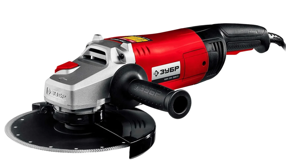 СТАНДАРТУровень качества. При классификации продуктов, имеющих схожее наименование, но обладающие различными потребительскими свойствами мы приняли следующий Вес факторов: 80% - подтвержденный ресурс, 15% - заявленная производительность/скорость, 5% - субъективные ощущения потребителя. ПодробнееКод товара: 0060837(0)ХарактеристикиАртикул УШМ-230-2605 ПБренды ЗубрСтрана производства КитайПотребляемая мощность 2600Число оборотов холостого хода 6000Скорость вращения 6600Резьба шпинделя M14Макс. диаметр диска, мм 230Диаметр диска 230Длина сетевого шнура 2X-Lock нетКейс в комплекте нетВес 6Питание сетьРегулировка скорости оборотов нетКейс Нет«Константная» электроника нетФиксация шпинделя естьПылеотвод НетБоковая рукоятка ДаСинхронизация со смартфоном НетОстановка при заклинивании НетПлавный пуск ДаОписание товара обновлено 08.12.2025 14:26:46Угловая шлифмашина ЗУБР УШМ-230-2405 П, предназначена для зачистки, шлифовки и резки металлов, обработки бетона и камня при установке соответствующих шлифовальных, отрезных, алмазных кругов. Специально разработанный корпус редуктора для улучшения теплоотвода и улучшения прочности самого нагруженного узла. Система плавного пуска позволяет включать мощный двигатель без рывка и пусковой перегрузки. Пылезащищенный выключатель (степень защиты IP5X) - надежная защита основного узла. Поворотные голова и основная рукоятка для более комфортной работы даже в сложных условиях. Удобная блокировка шпинделя для простой смены диска. Фирменная дополнительная рукоятка, устанавливаемая в 2 положениях. Широкий эргономичный выключатель с пылезащитой, блокировкой непреднамеренного включения, а также фиксацией во включенном положении.Производитель: Крафтул И/Е Гмбх, Альтер Поствег Штр., Лоенинген, Германия