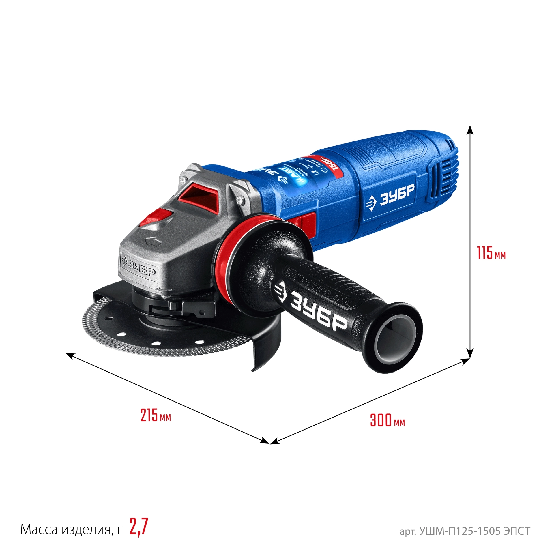 Угловая шлифмашина ЗУБР УШМ-П125-1505 ЭПСТ, предназначена для зачистки, шлифовки и резки металлов, обработки бетона и камня при установке соответствующих шлифовальных, отрезных, алмазных кругов.Производитель: Крафтул И/Е Гмбх, Альтер Поствег Штр., Лоенинген, Германия