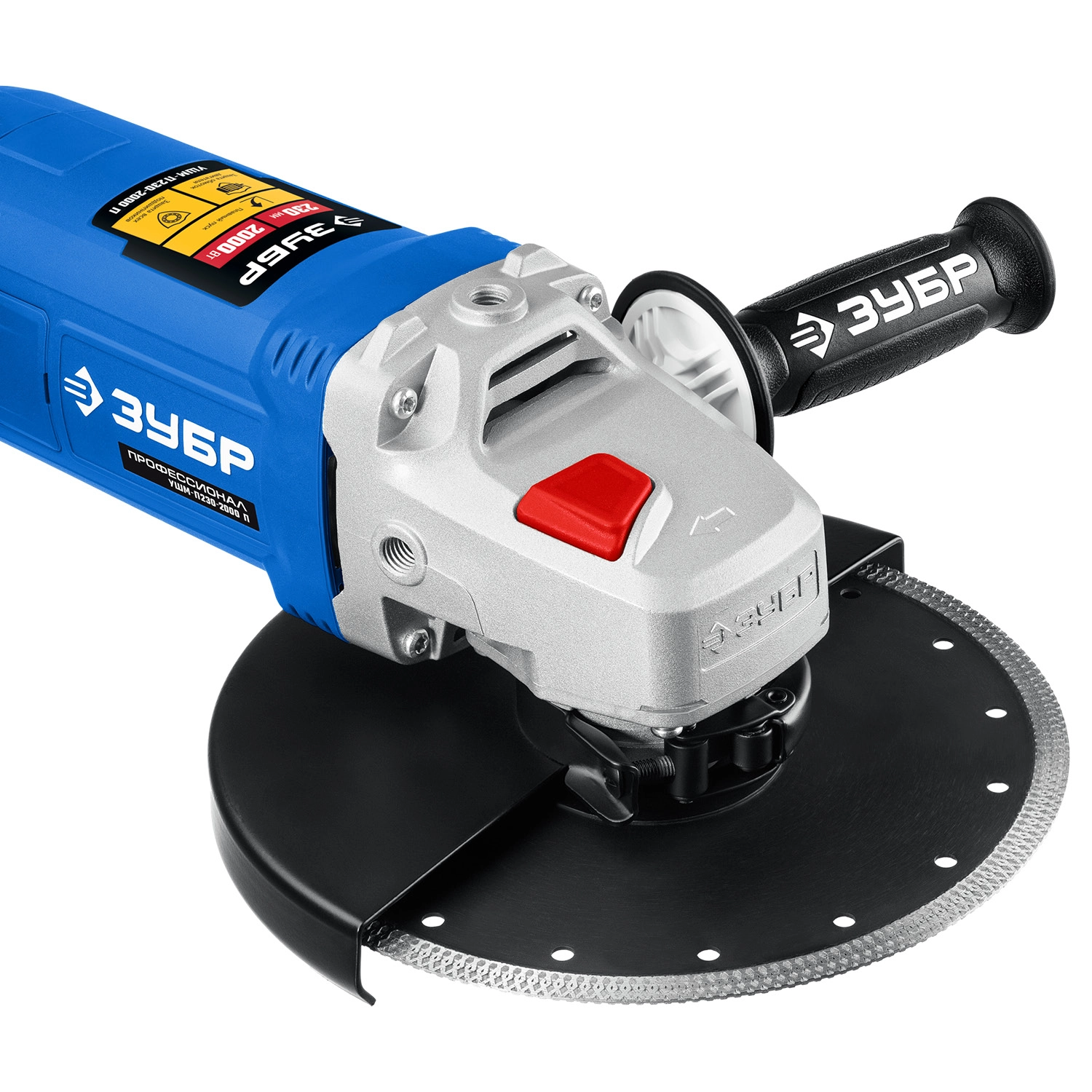 ПроизводителиУгловая шлифмашина УШМ-П230-2000 П (2000 Вт, круг 230х22 мм, пл. пуск, кор.) ЗУБР