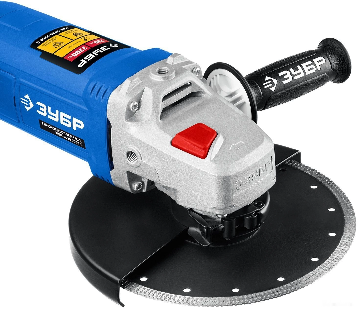 ПроизводителиУгловая шлифмашина УШМ-П230-2200 П (2200 Вт, круг 230х22 мм, пл. пуск, кор.) ЗУБР