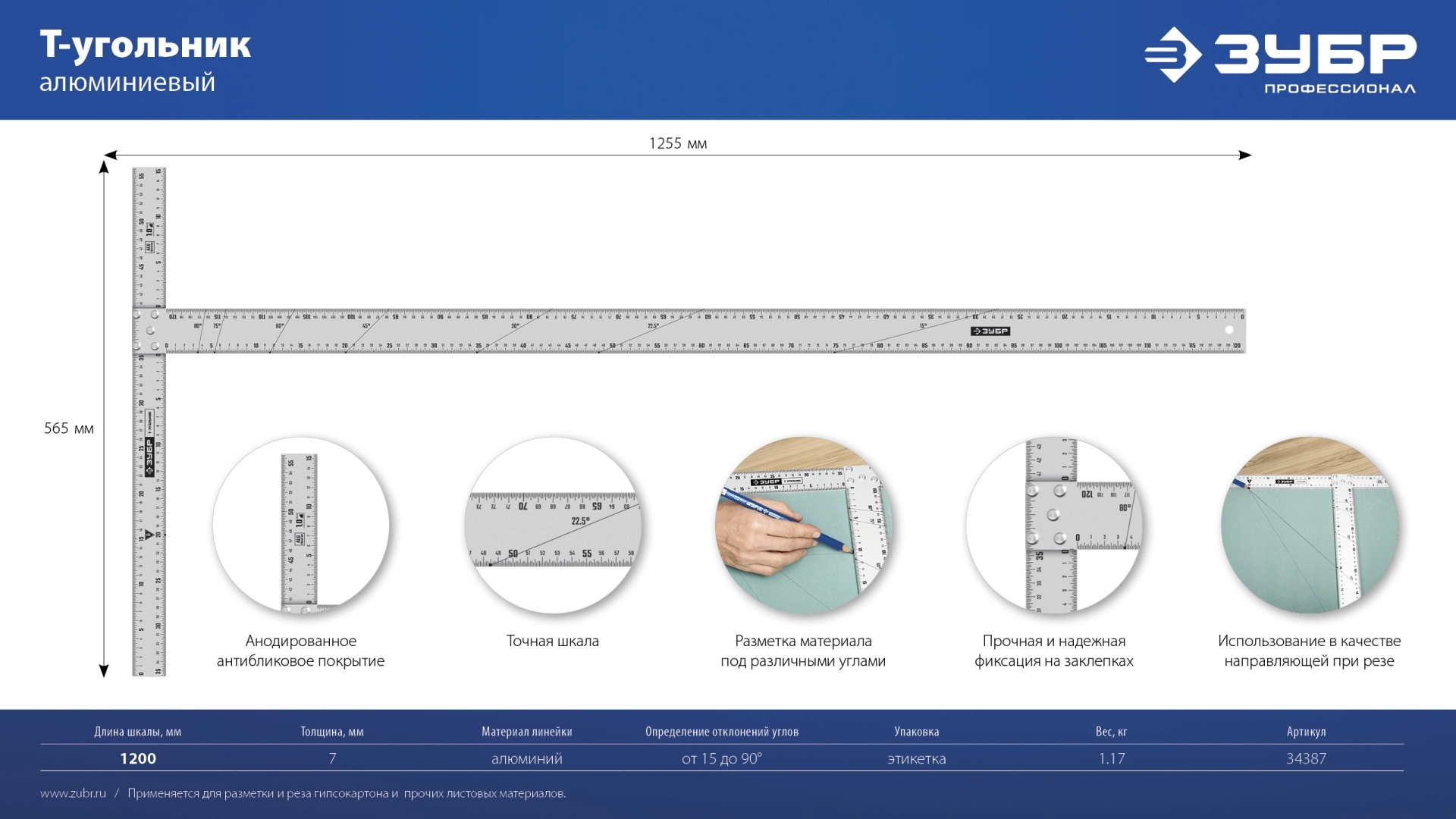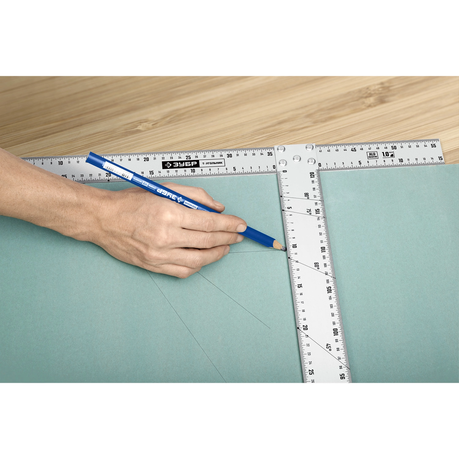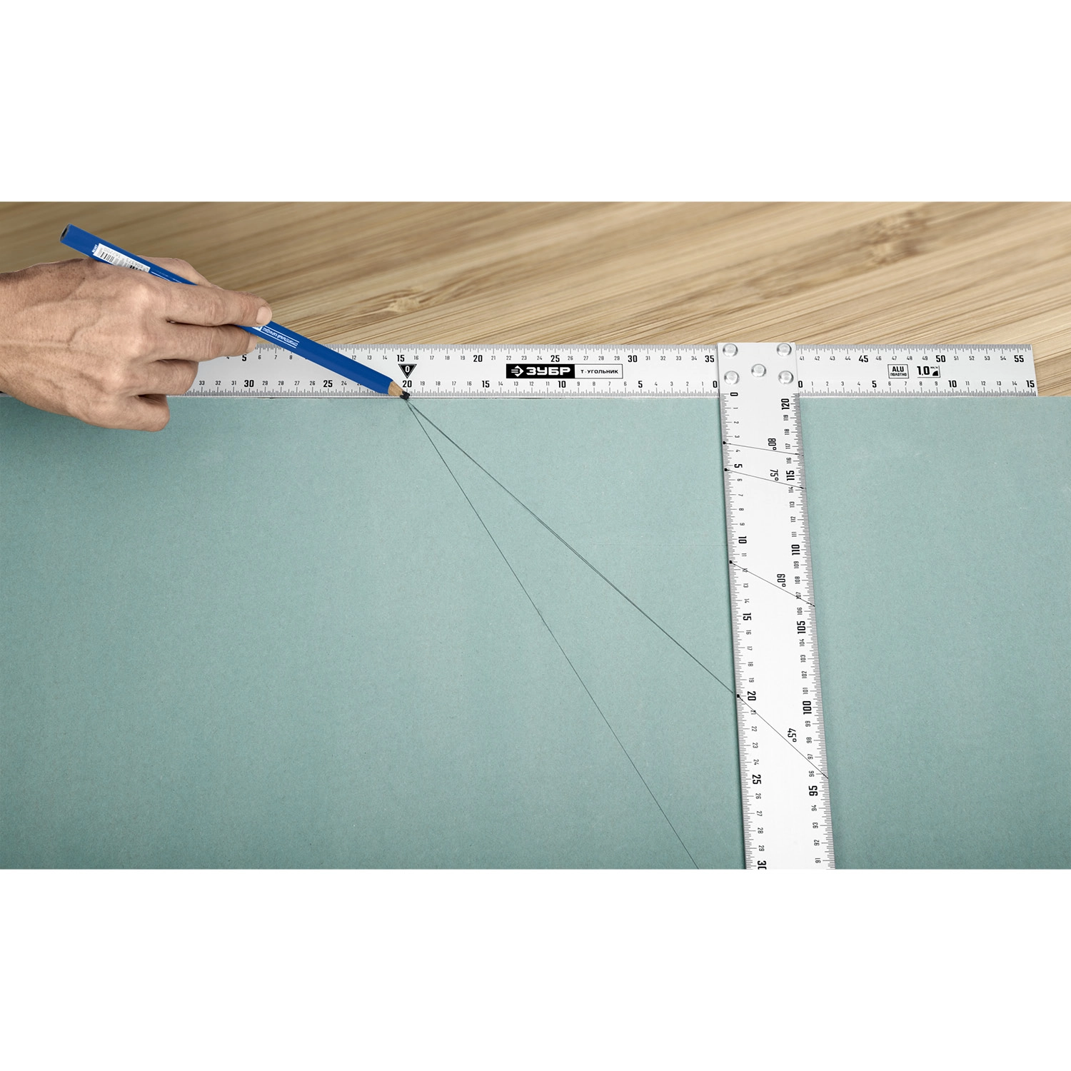 Специальный Т-угольник идеально подходит для реза гипсокартона и листовых материалов.