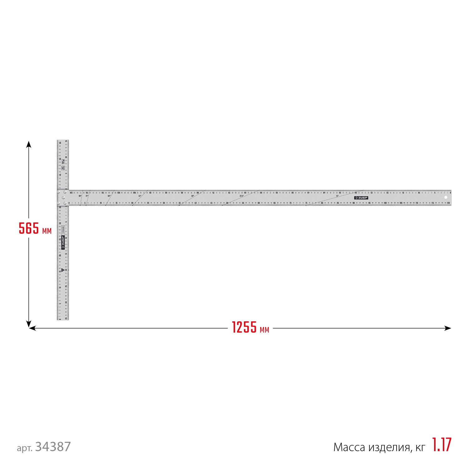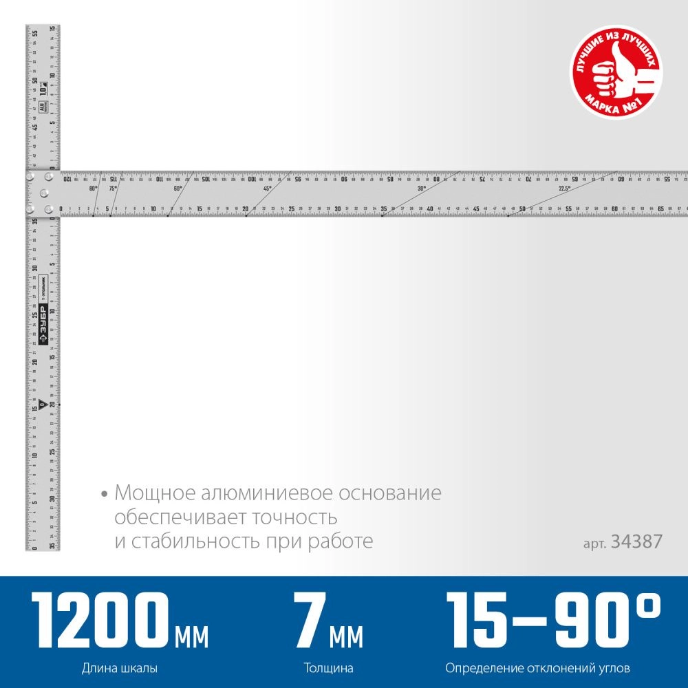 ПроизводителиУгольник алюминиевый Т-образный 1200мм (34387) ЗУБР