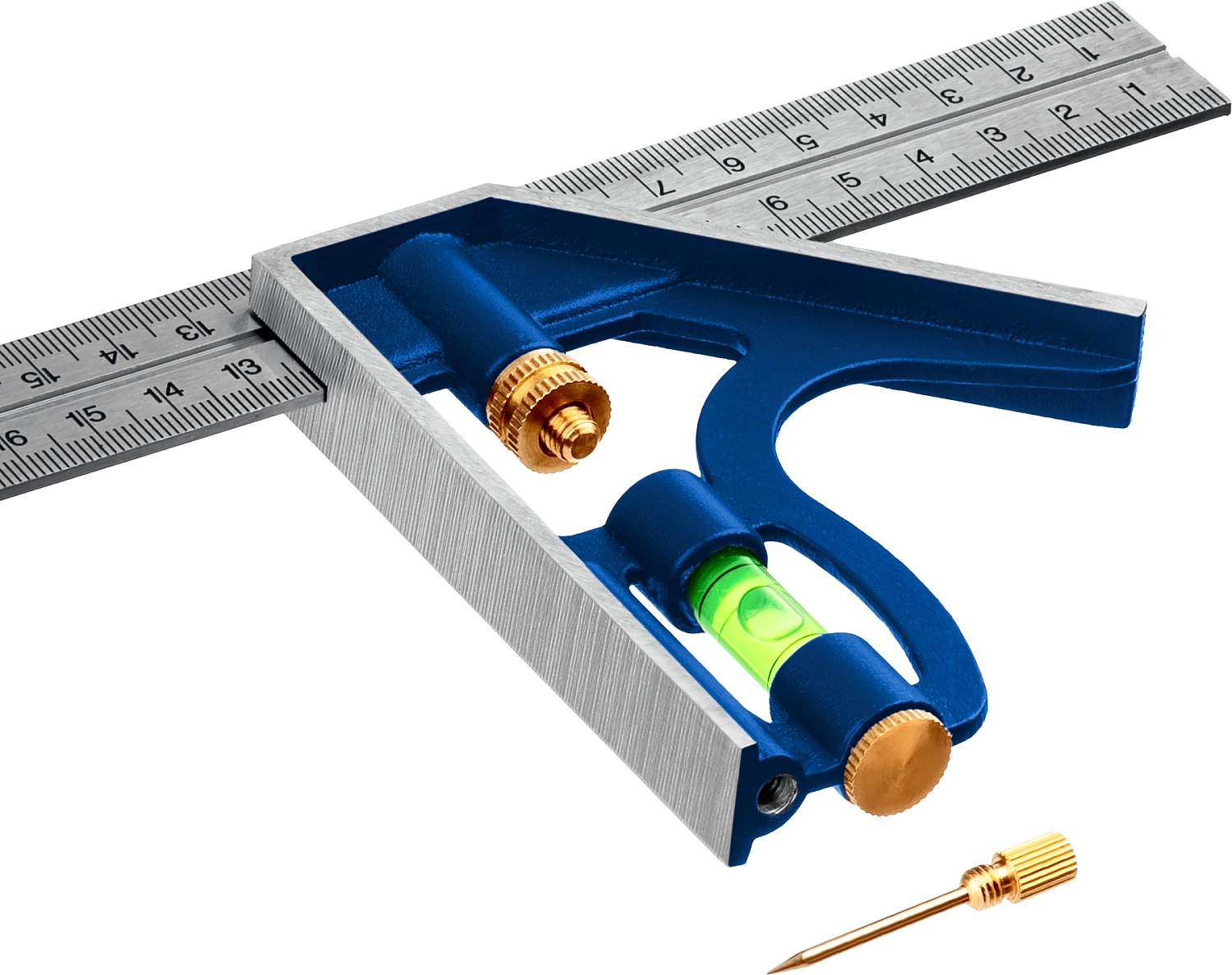 Комбинированный многофункциональный угольник профессионального применения. Изготовлен с высокой точностью на прецизионном оборудовании, что обеспечивает высокую надёжность разметки внешних и внутренних углов.