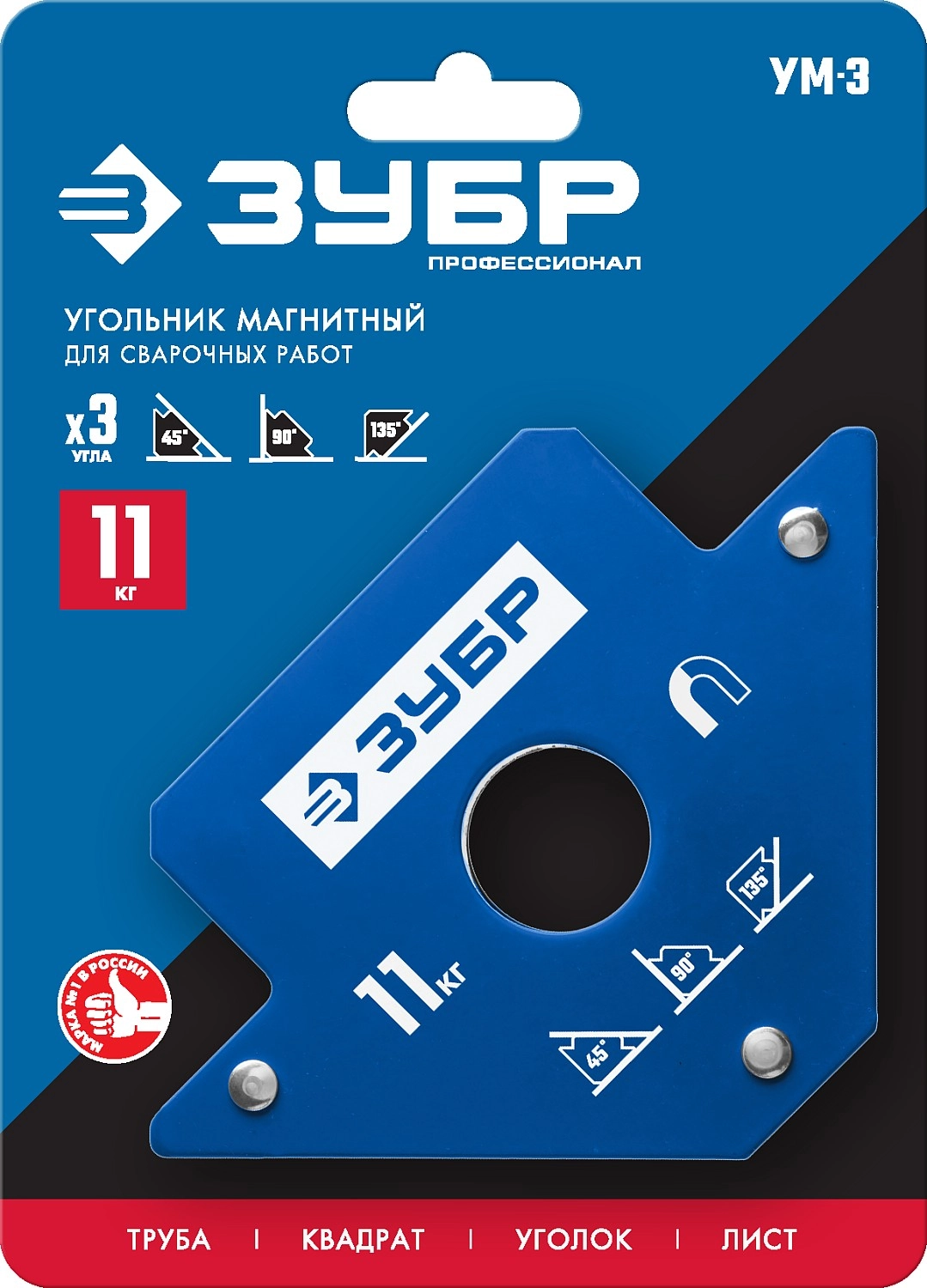 ПроизводителиУгольник магнитный (струбцина) для сварочных работ, до 11кг, 3 угла фиксации "УМ-3" (40050-11) ЗУБР