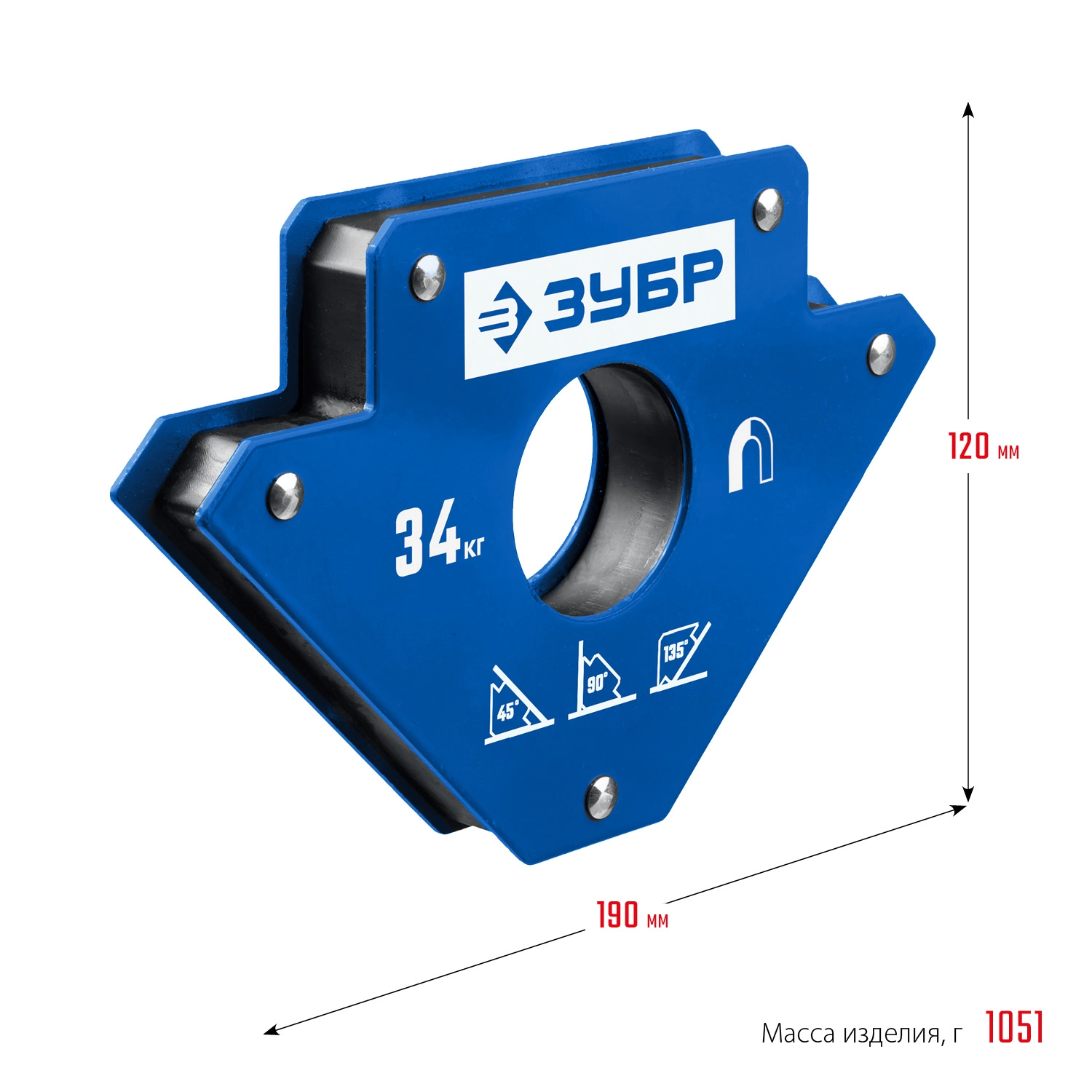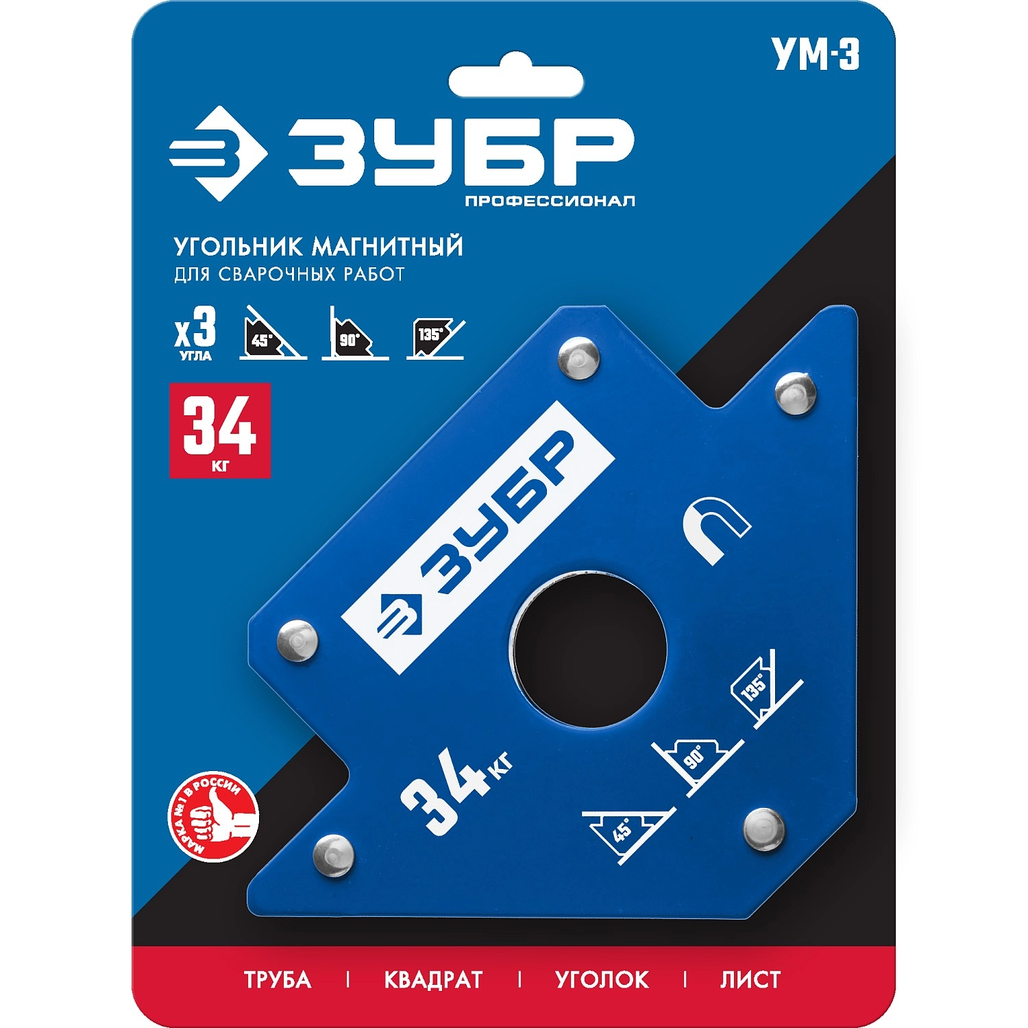 ПроизводителиУгольник магнитный (струбцина) для сварочных работ, до 34кг, 3 угла фиксации "УМ-3" (40050-34) ЗУБР