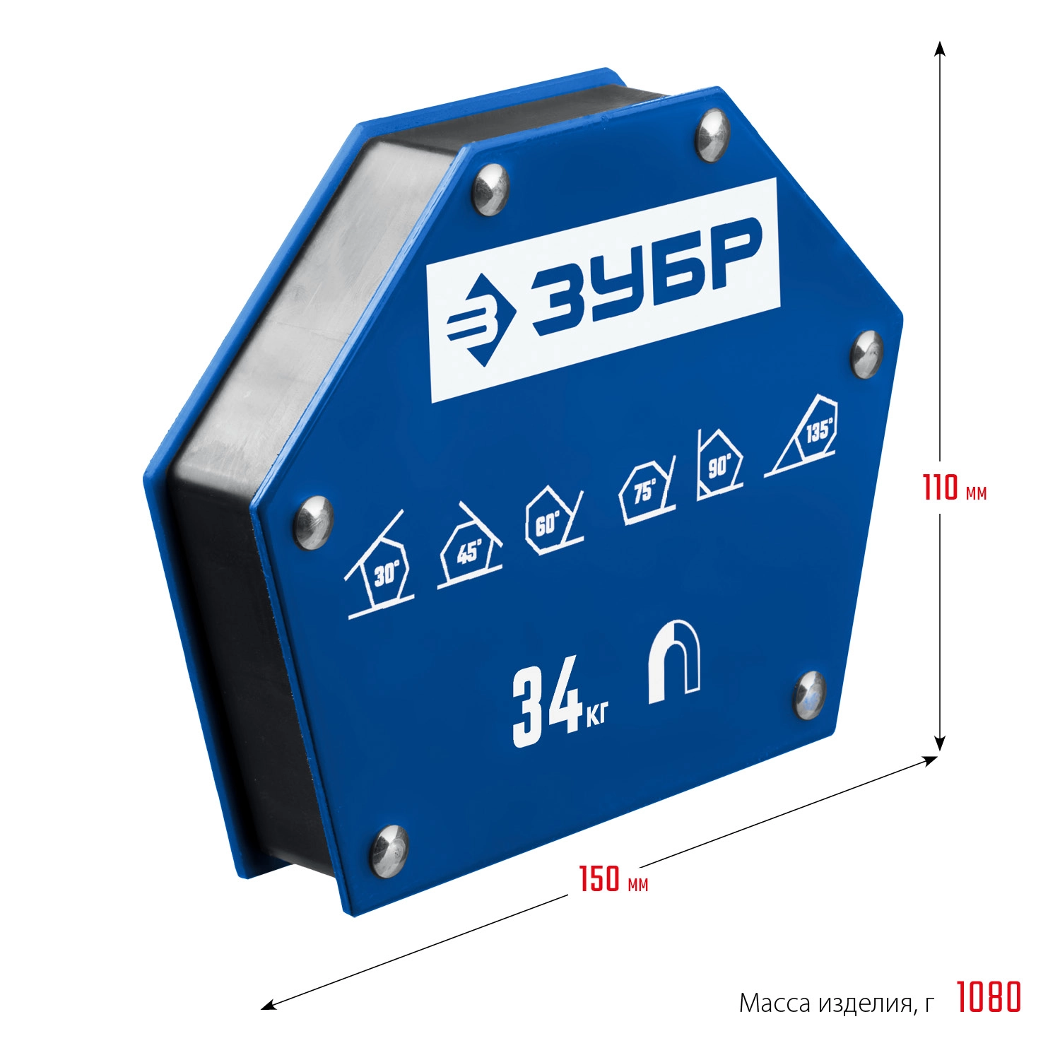 ПроизводителиУгольник магнитный (струбцина) для сварочных работ, до 34кг, 6 углов фиксации "УМ-6" (40055-34) ЗУБР