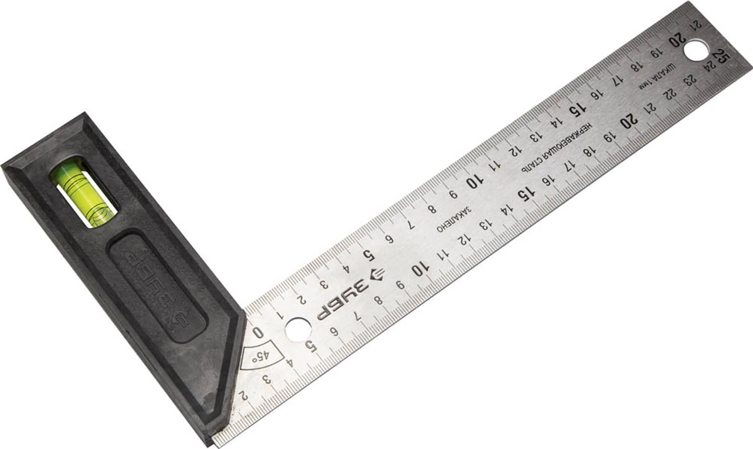 ПРОФИУровень качества. При классификации продуктов, имеющих схожее наименование, но обладающие различными потребительскими свойствами мы приняли следующий Вес факторов: 80% - подтвержденный ресурс, 15% - заявленная производительность/скорость, 5% - субъективные ощущения потребителя. ПодробнееКод товара: 0024384(0)Угольник разметочный ЗУБР 34397-25, предназначен для проведения измерительных и разметочных работ. Измерительный инструмент «ЗУБР» предназначен для профессионального применения. Изготовлен с высокой точностью на прецизионном оборудовании, что обеспечивает высокую надежность измерительных работ. Утолщенное, особо прочное полотно из нержавеющей стали с травленой шкалой увеличивает срок службы инструмента. Усиленная конструкция с интегрированным в рукоятку полотном обеспечивает точность измерений. Оснащен встроенным уровнем с точностью +/-1,5 мм/м, что обеспечивает дополнительное удобство в работе. Широкое основание упрощает разметку при выполнении столярных работ. Измерительное полотно изготовлено в соответствии с ГОСТ 427-75. ХАРАКТЕРИСТИКИ: