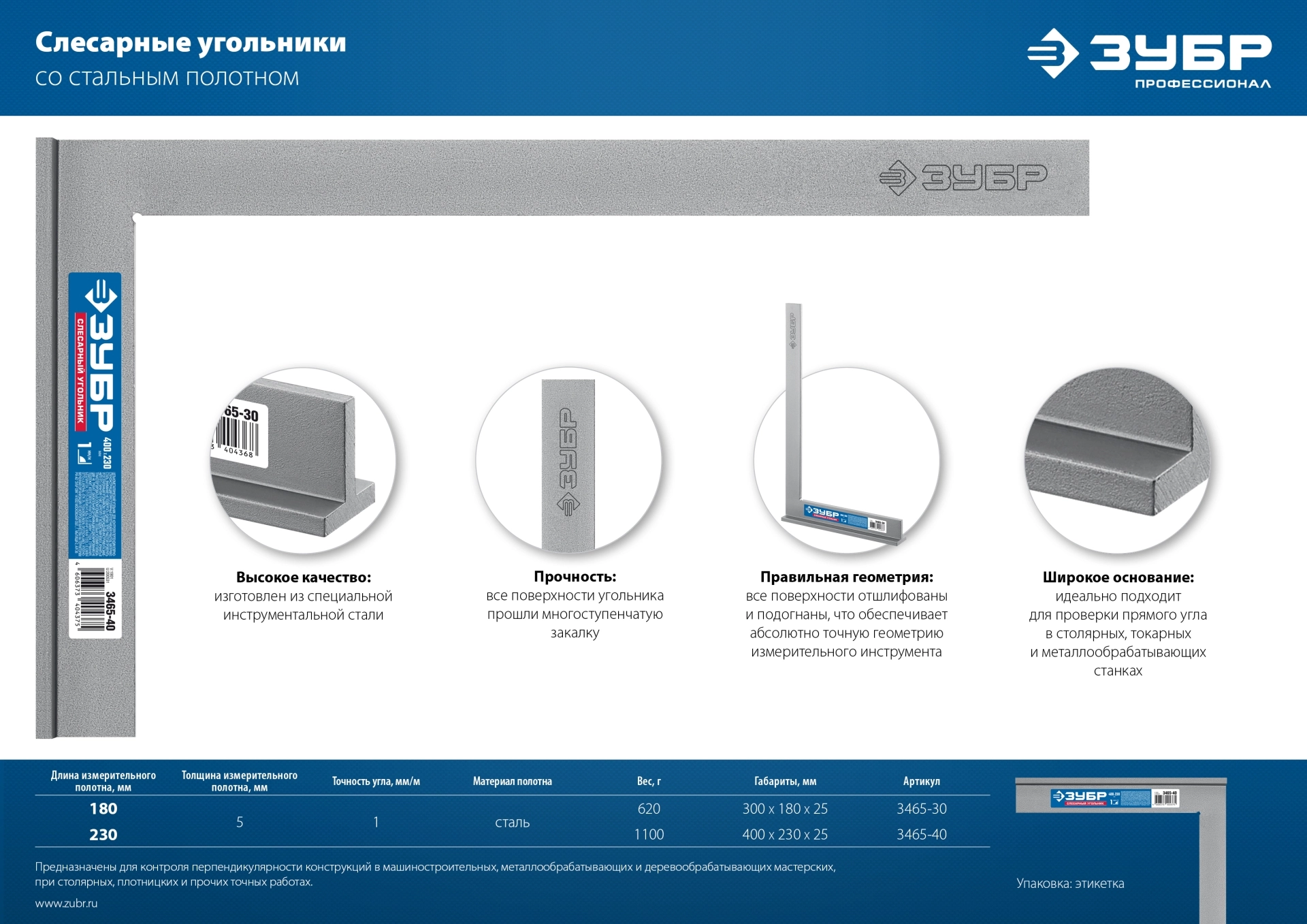 ПроизводителиУгольник слесарный 300х180мм, стальное полотно "ПРОФЕССИОНАЛ" (3465-30) ЗУБР
