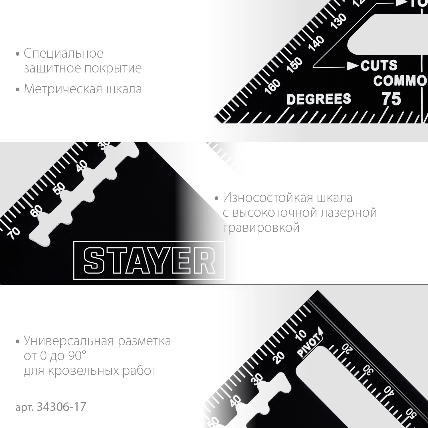 ПроизводителиУгольник универсальный кровельный 170мм, 5-в-1 (34306-17) STAYER