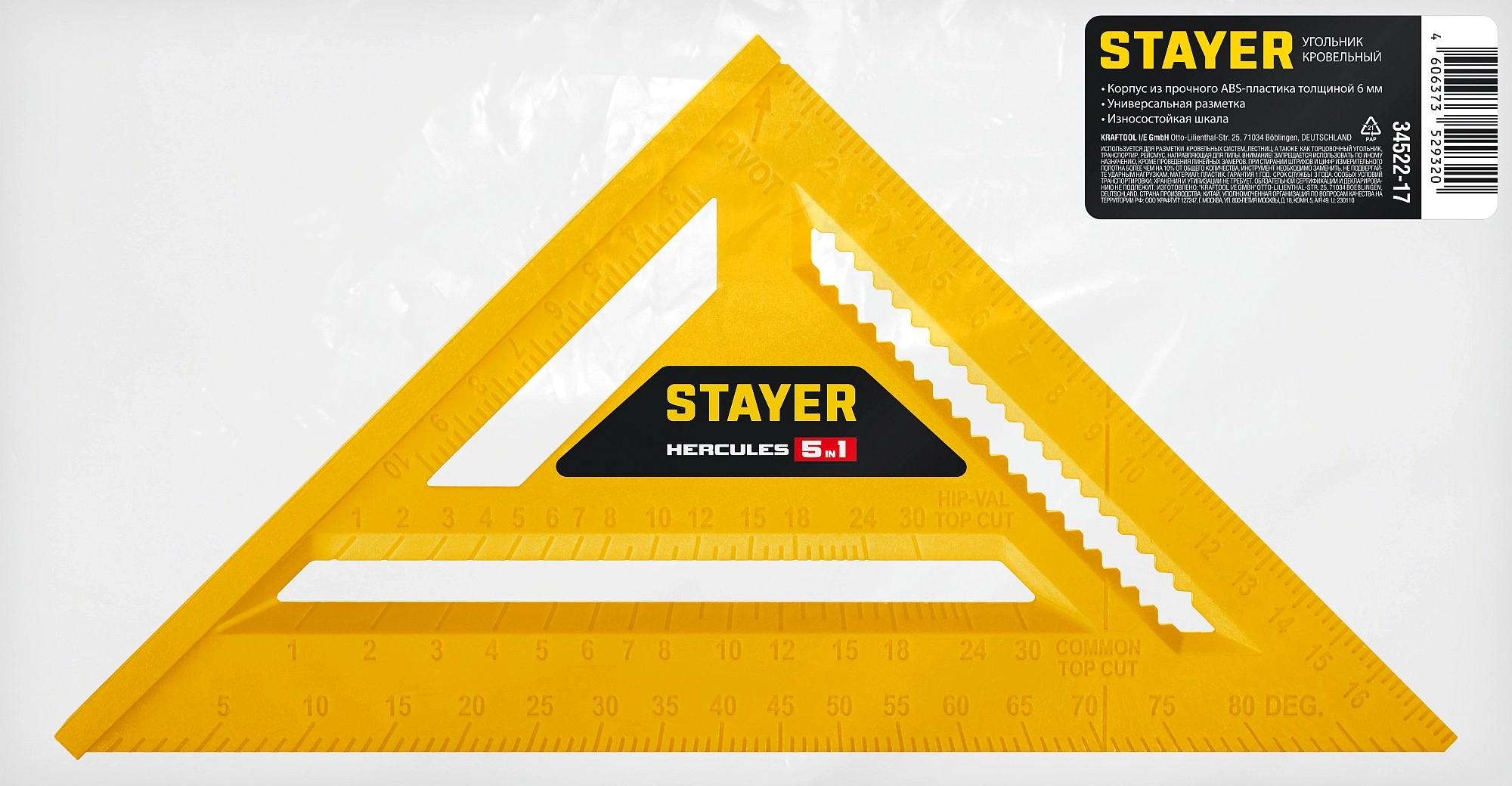 ПроизводителиУгольник универсальный кровельный 170мм, 5-в-1, пластиковый (34522-17) STAYER