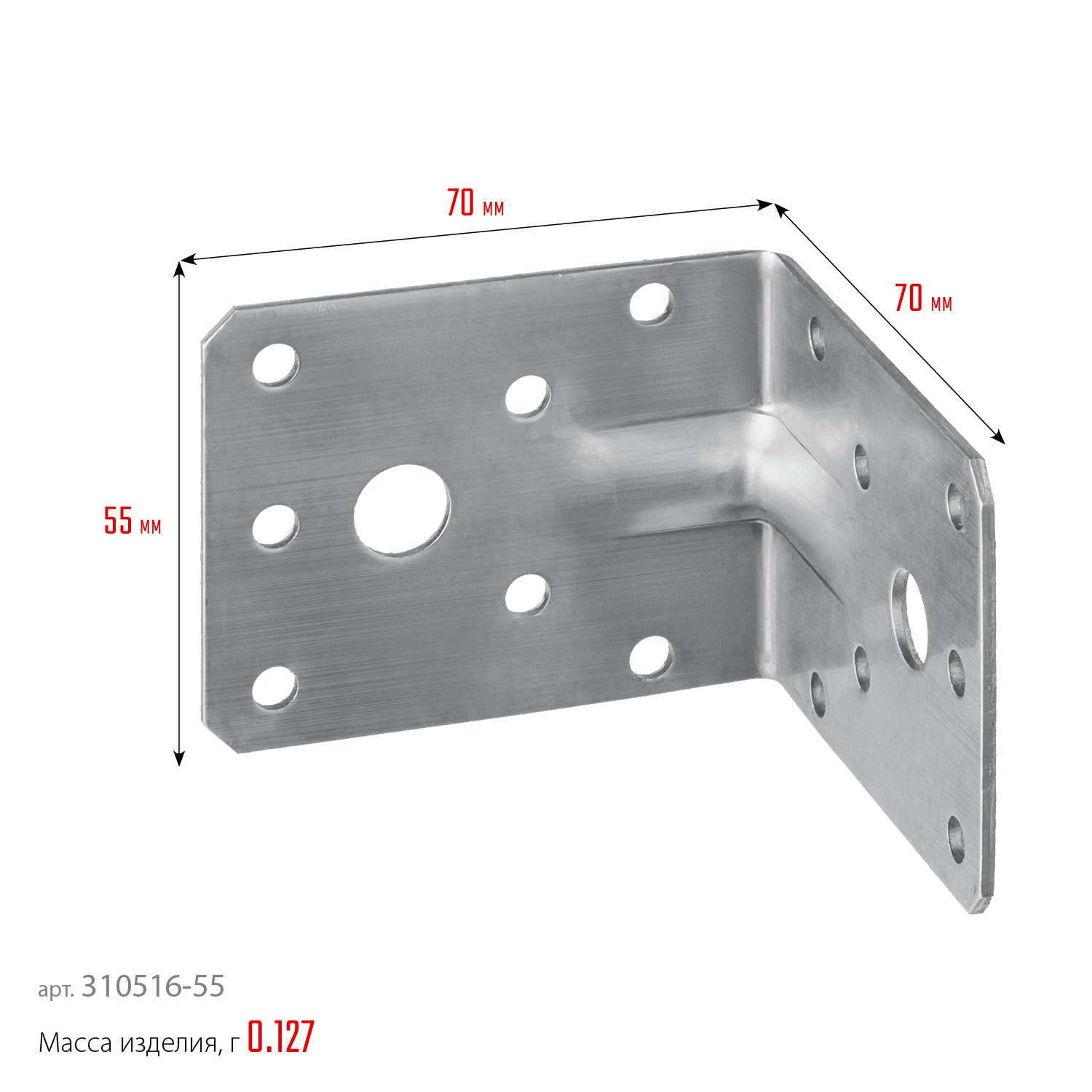 ПроизводителиУголок крепежный усиленный нержавеющий УНКУ-2.0, 55х70х70х2мм, Профессионал (310516-55) ЗУБР