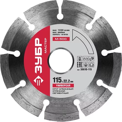 ПроизводителиКруг алмазный сегм. 115х1.9х7x22.23 мм Универсал (36610-115_z01) ЗУБР
