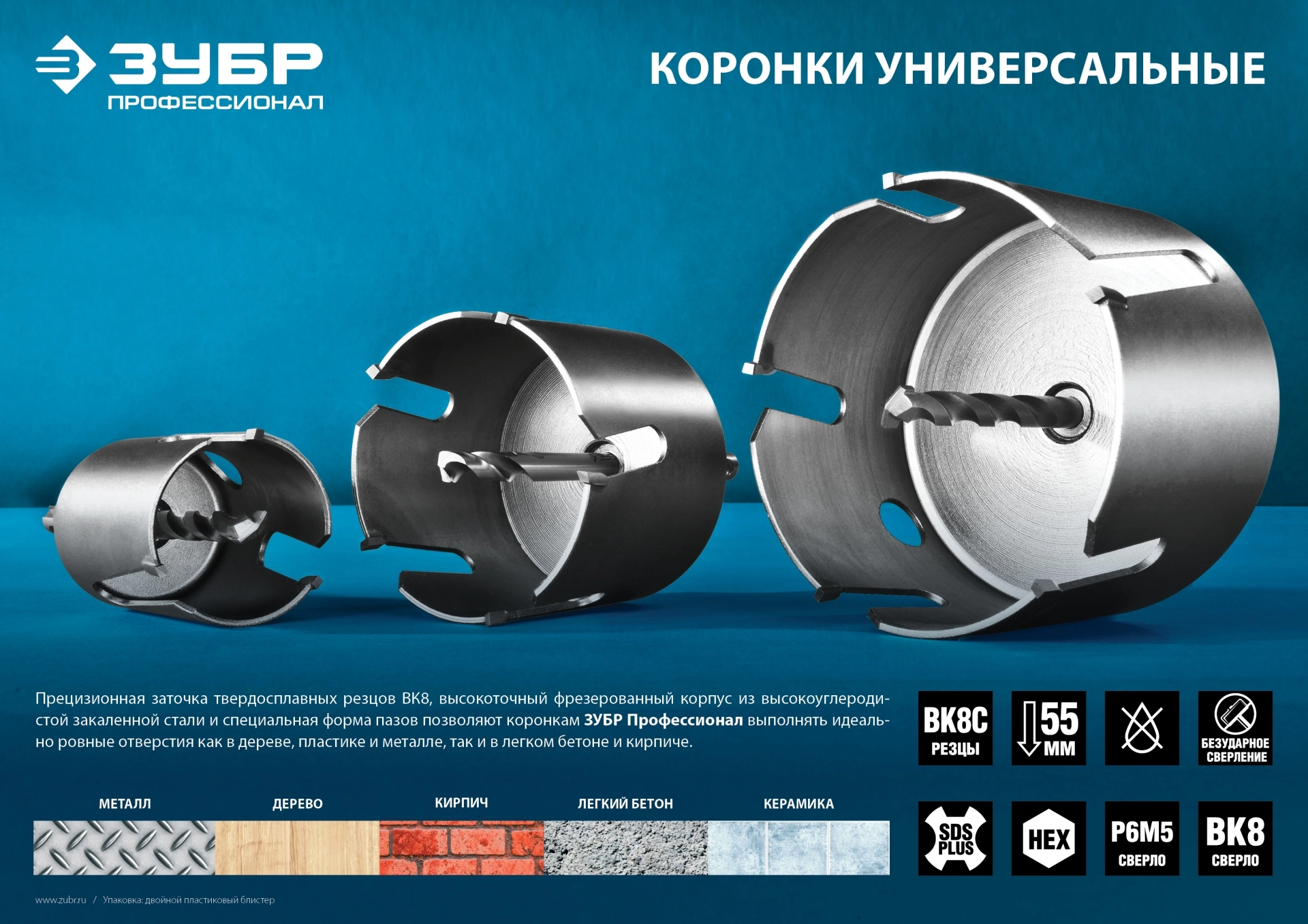 ПроизводителиКоронка универсальная 80мм, "ПРОФИ" "ПРОУНИВЕРСАЛ" (29514-80) ЗУБР