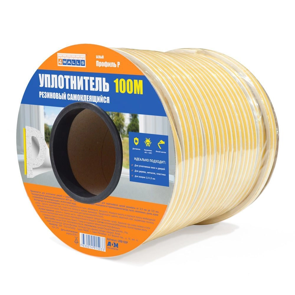 ПроизводителиУплотнитель резиновый P-профиль, 5.5х9 мм, 100м, белый (2607) 4Walls