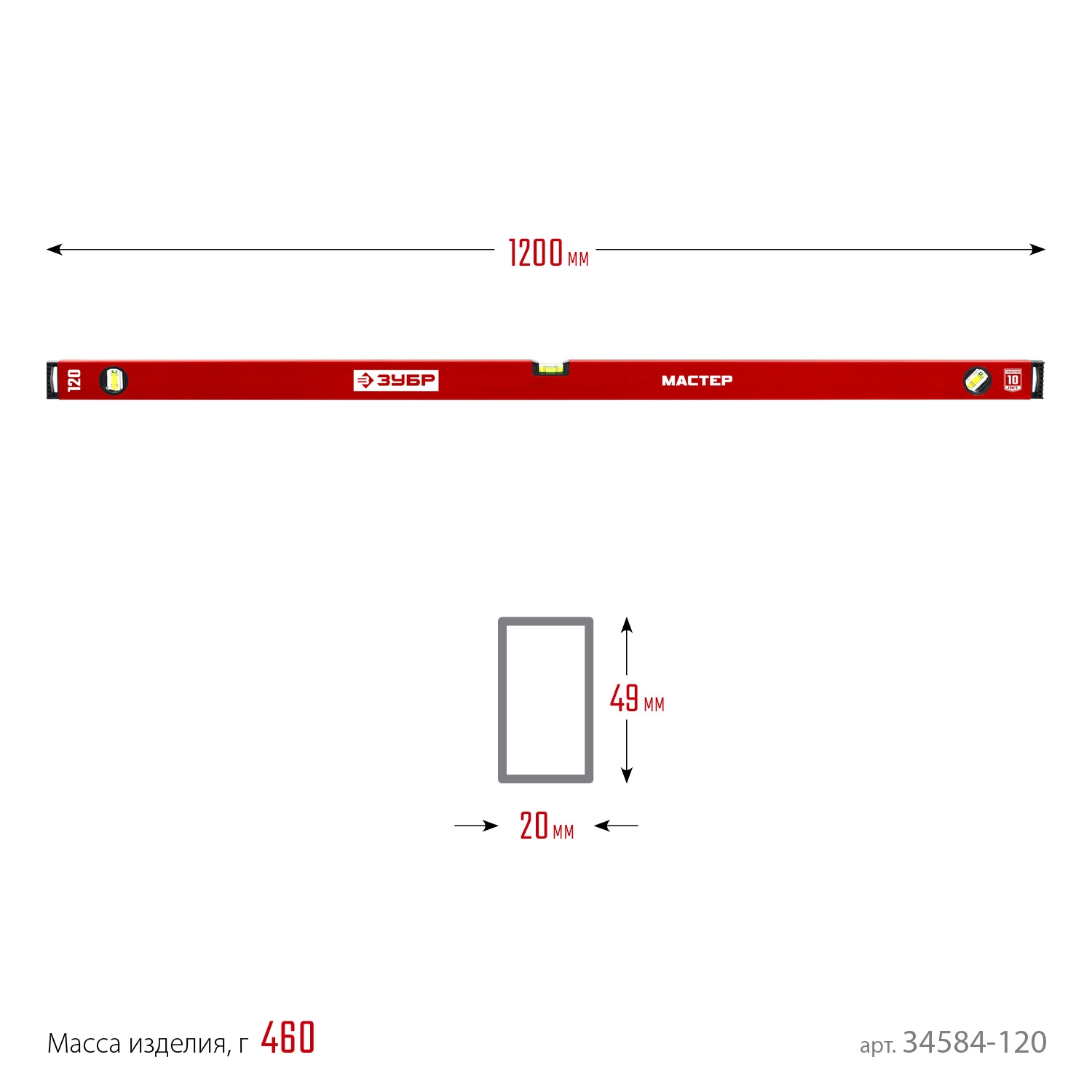 ПроизводителиУровень строительный, 120 см. (1.0 мм/м, 3 гл.), быт. (34584-0120_z01) ЗУБР