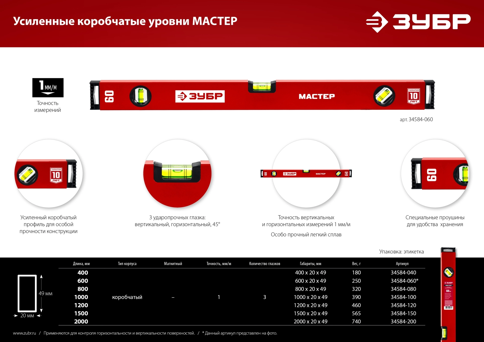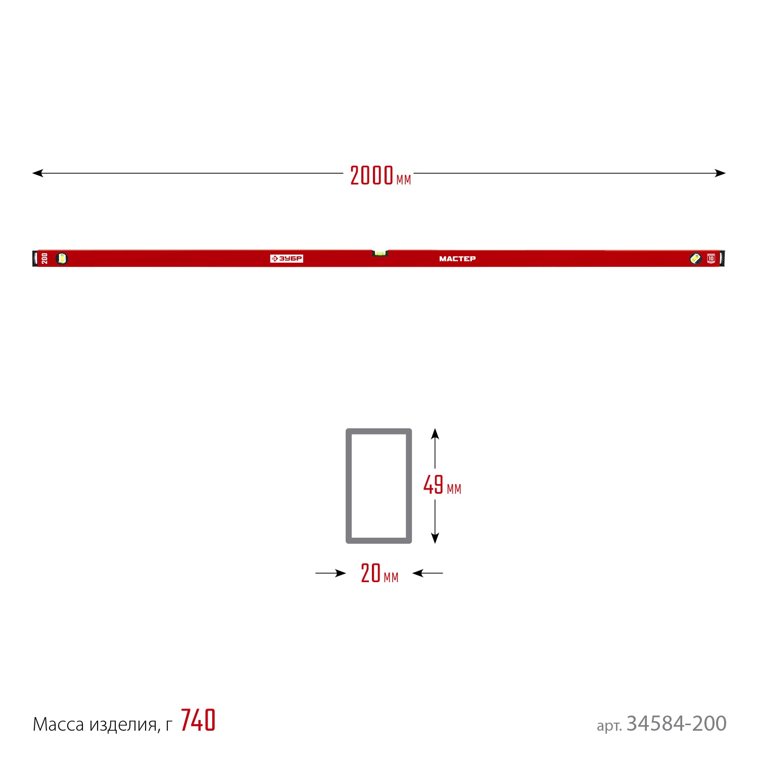 ПроизводителиУровень строительный, 200 см. (1.0 мм/м, 3 гл.), быт. (34584-0200_z01) ЗУБР