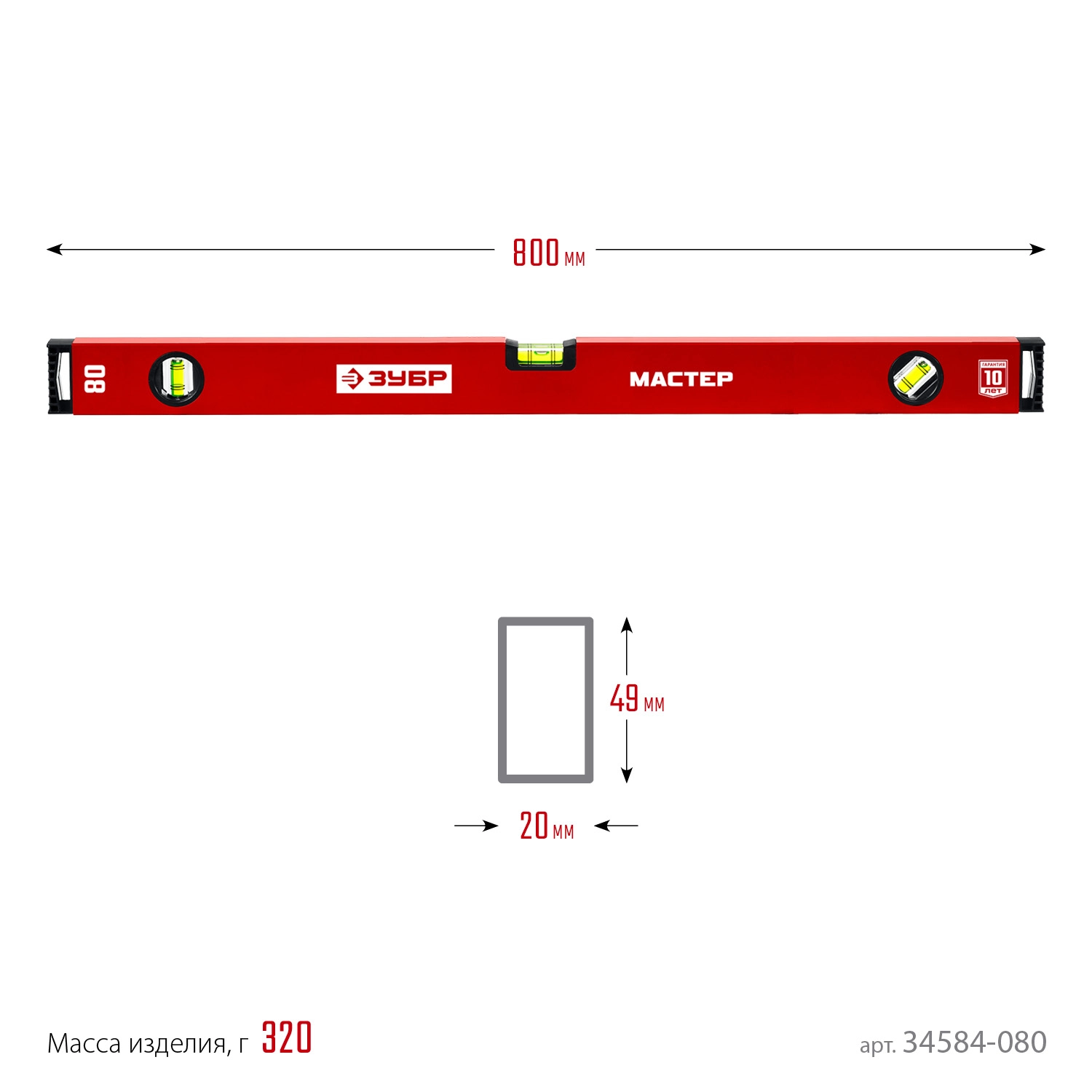 ПроизводителиУровень строительный, 80 см. (1.0 мм/м, 3 гл.), быт. (34584-080_z01) ЗУБР