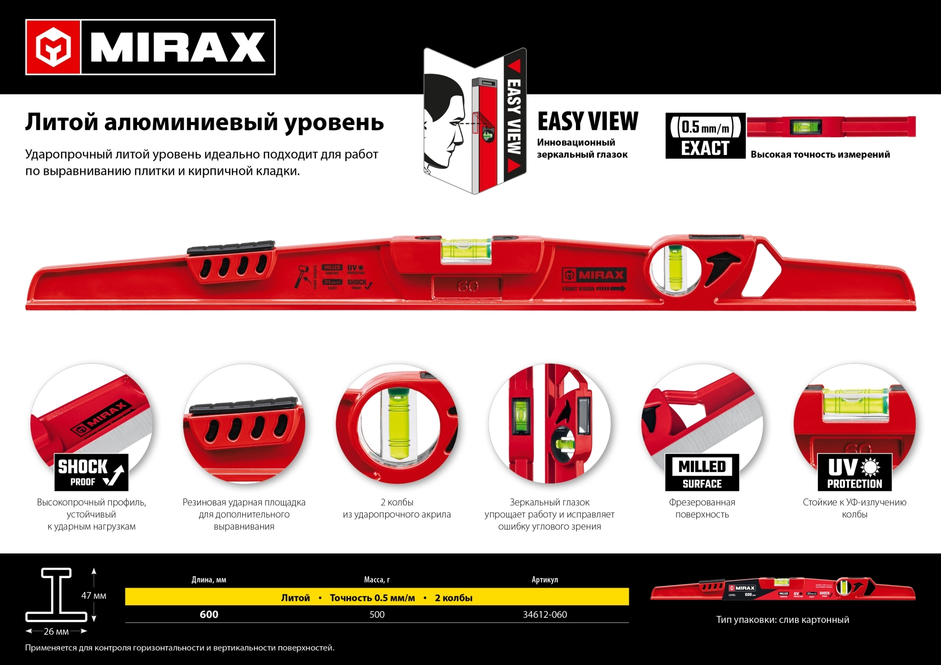 ПроизводителиУровень строительный, 60 см. (34612-060) MIRAX
